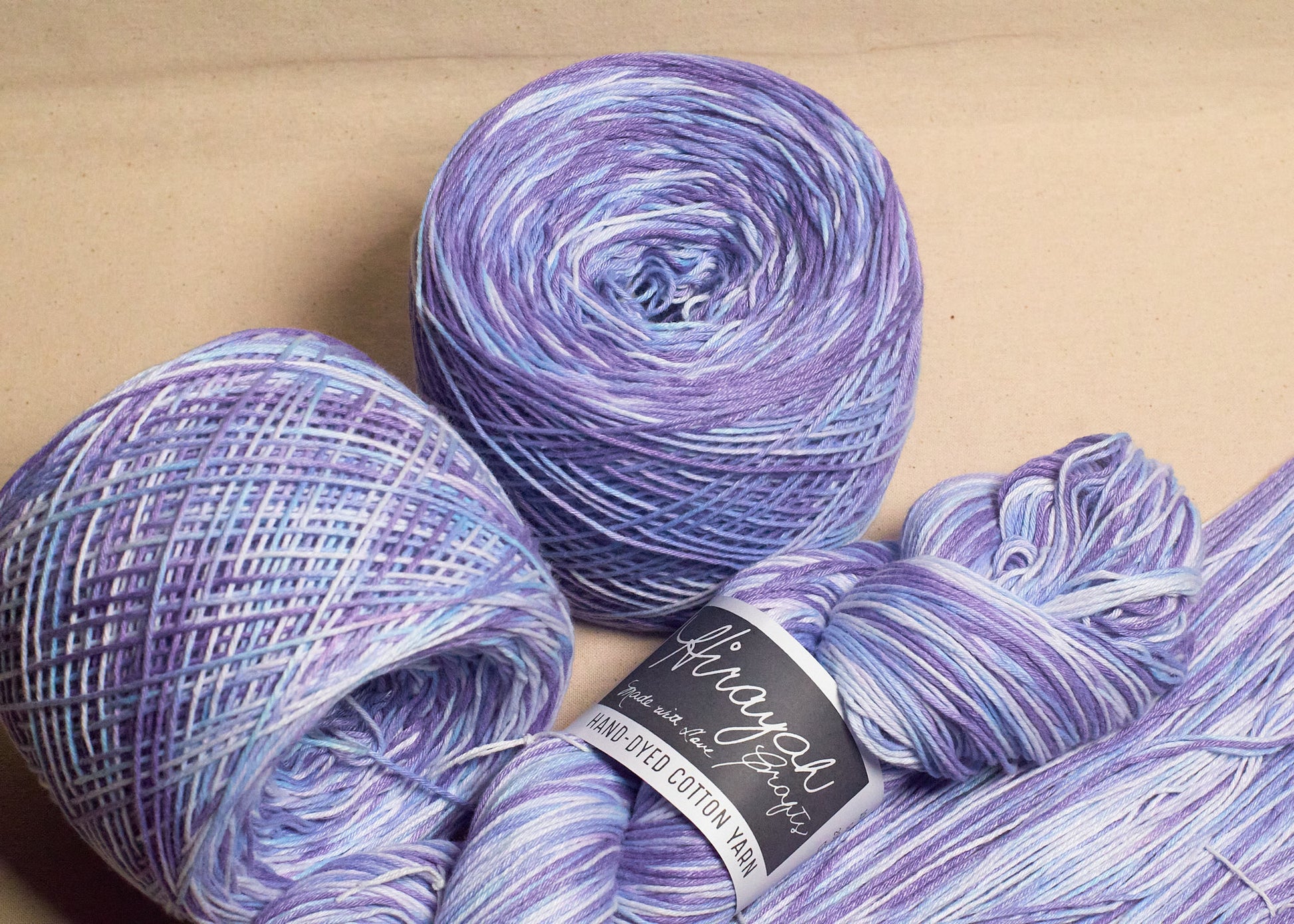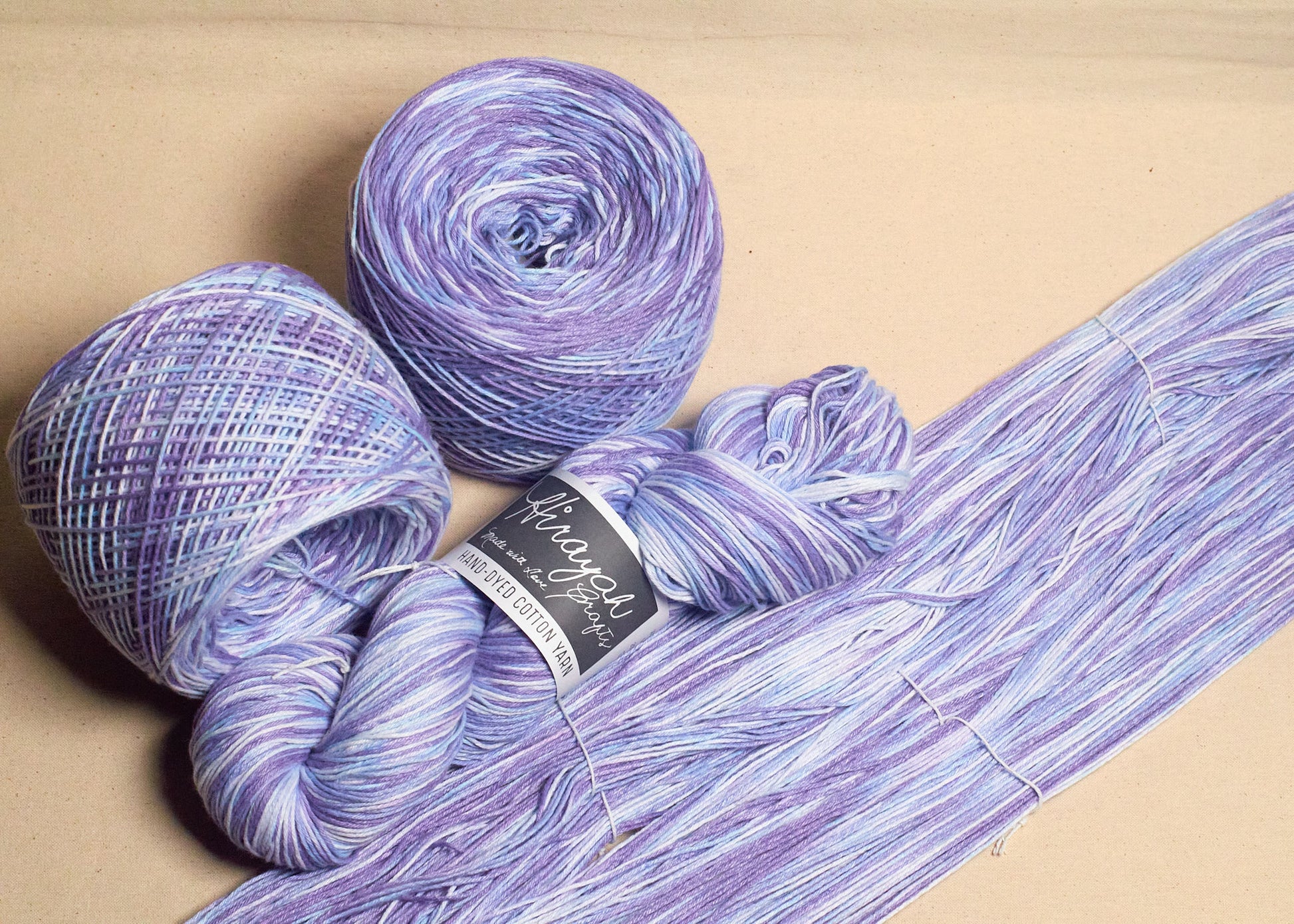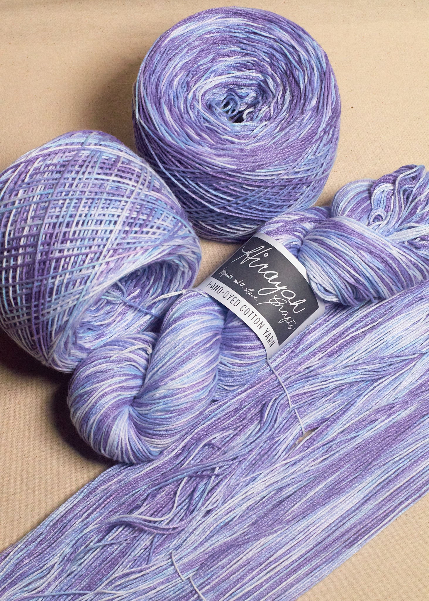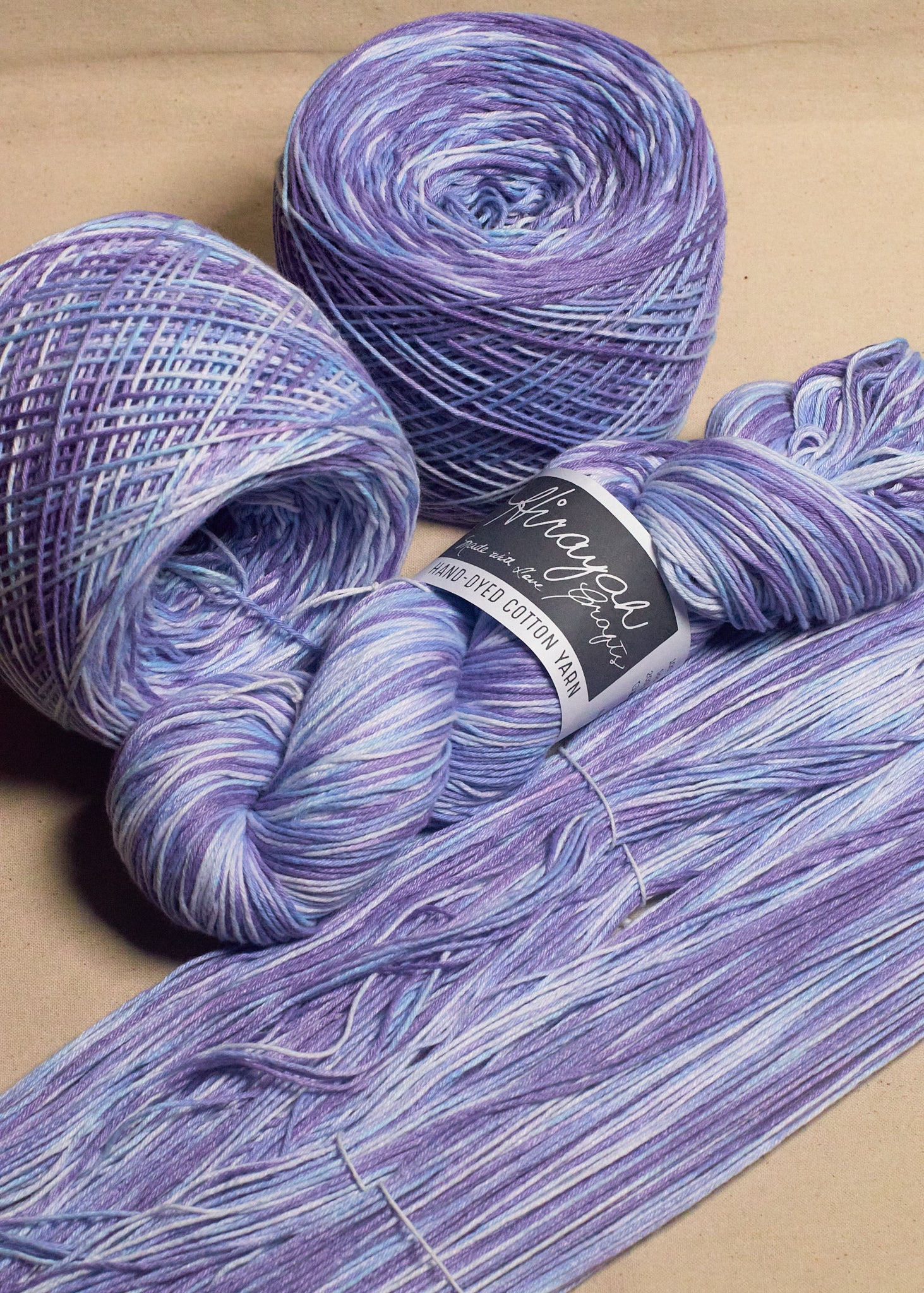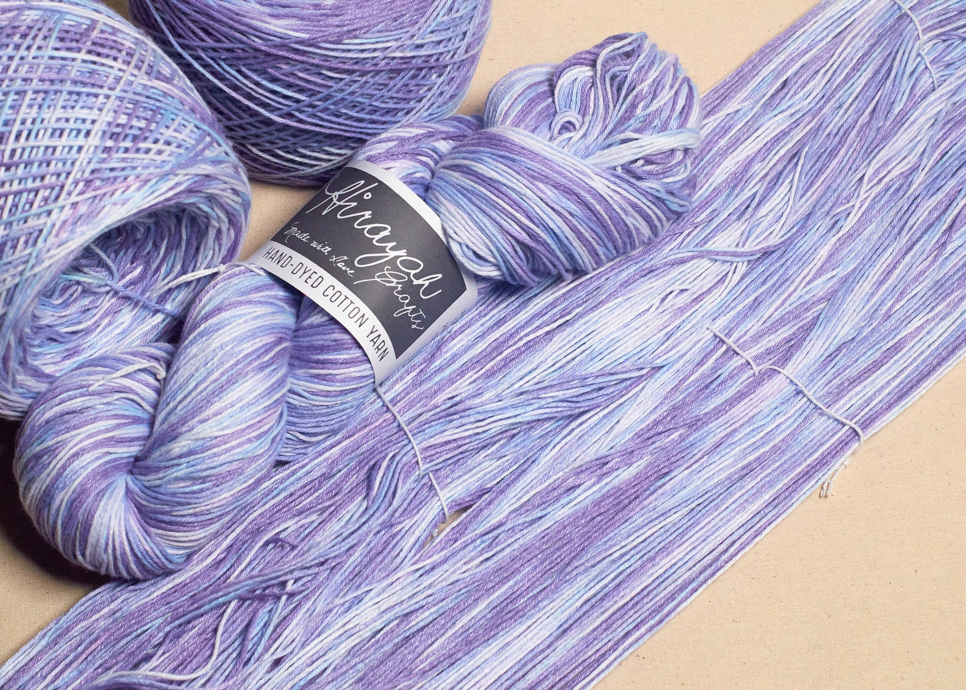 Light worsted weight/ 8ply hand-dyed cotton yarn.