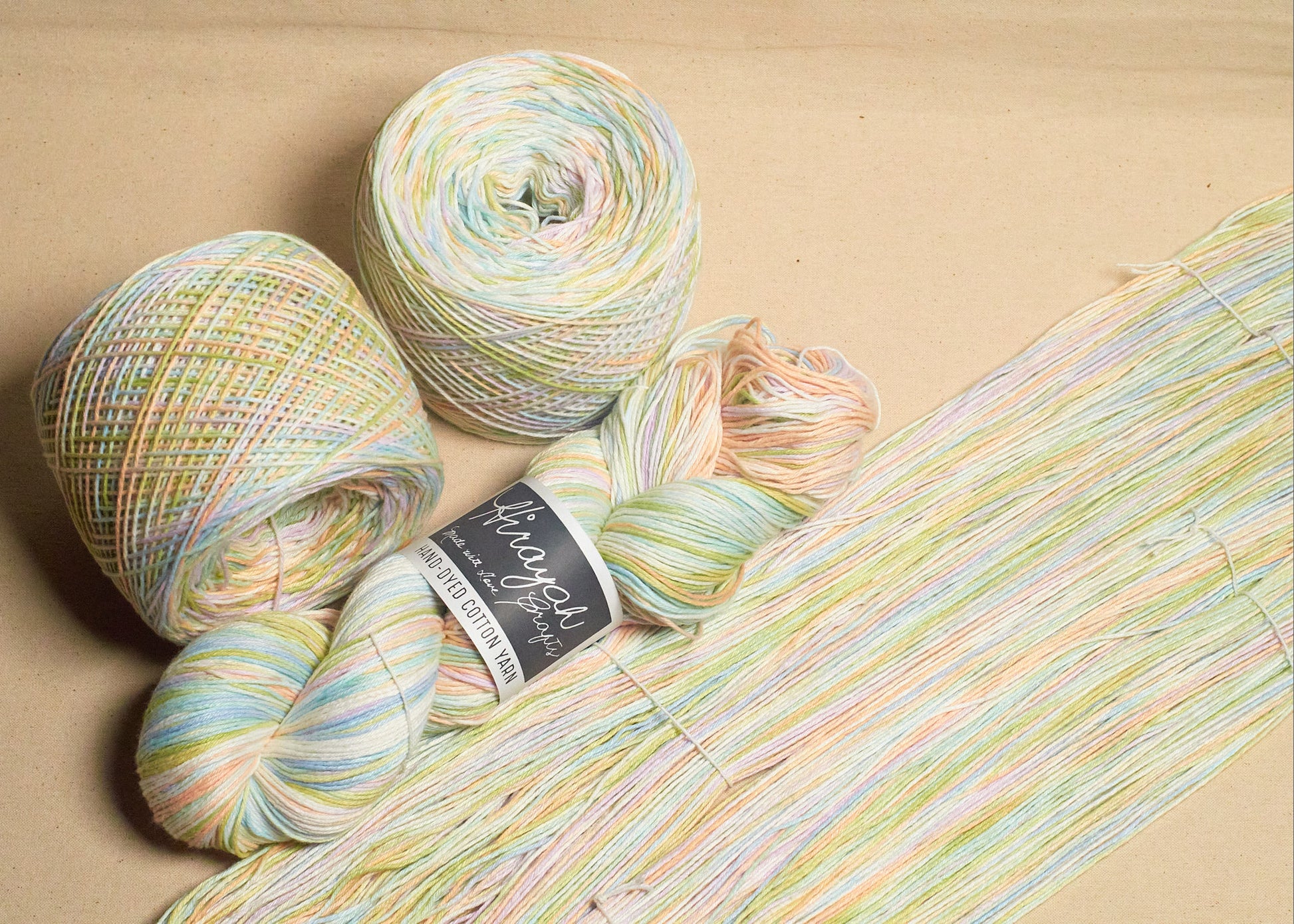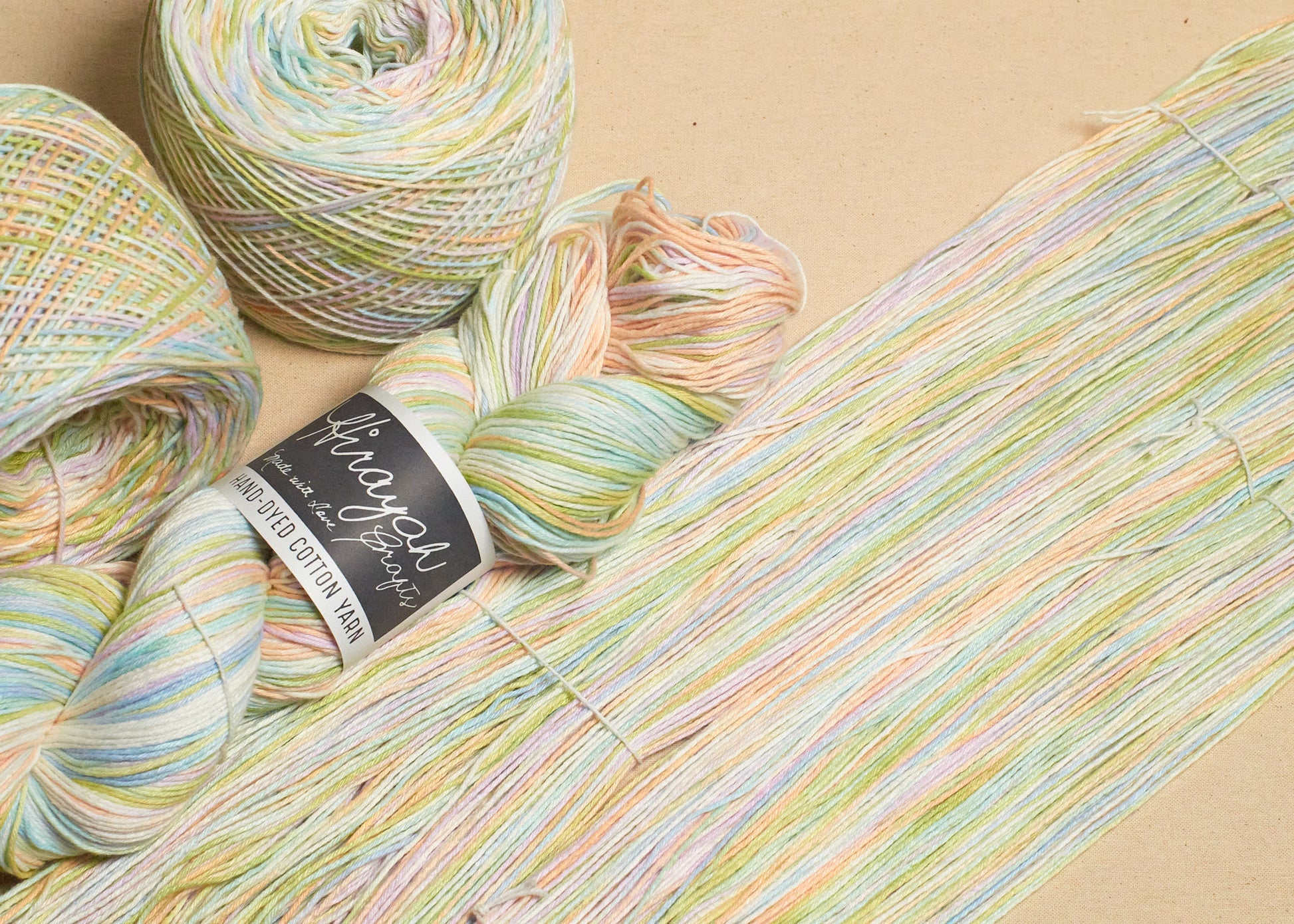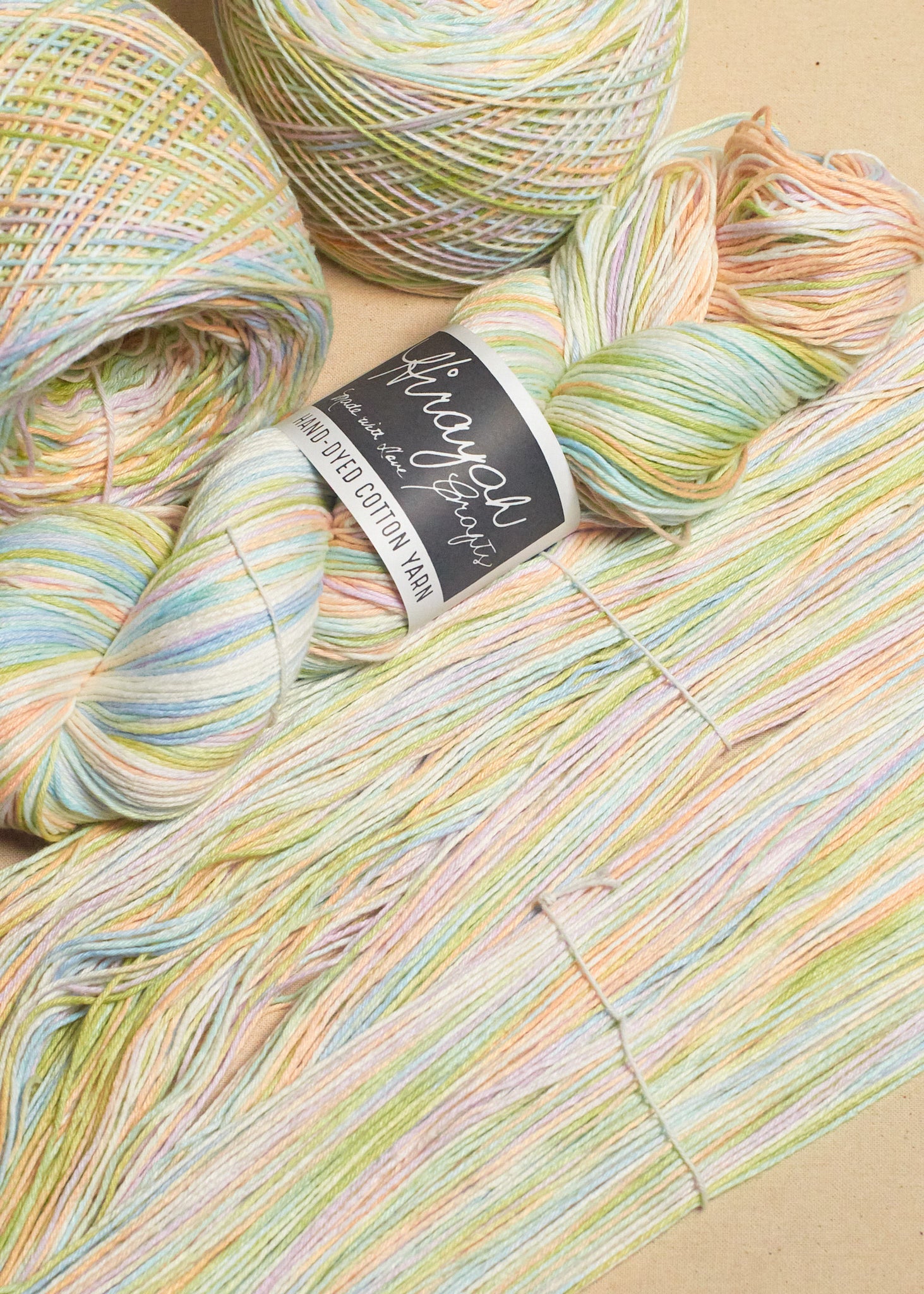 Light worsted weight/ 8ply hand-dyed cotton yarn.