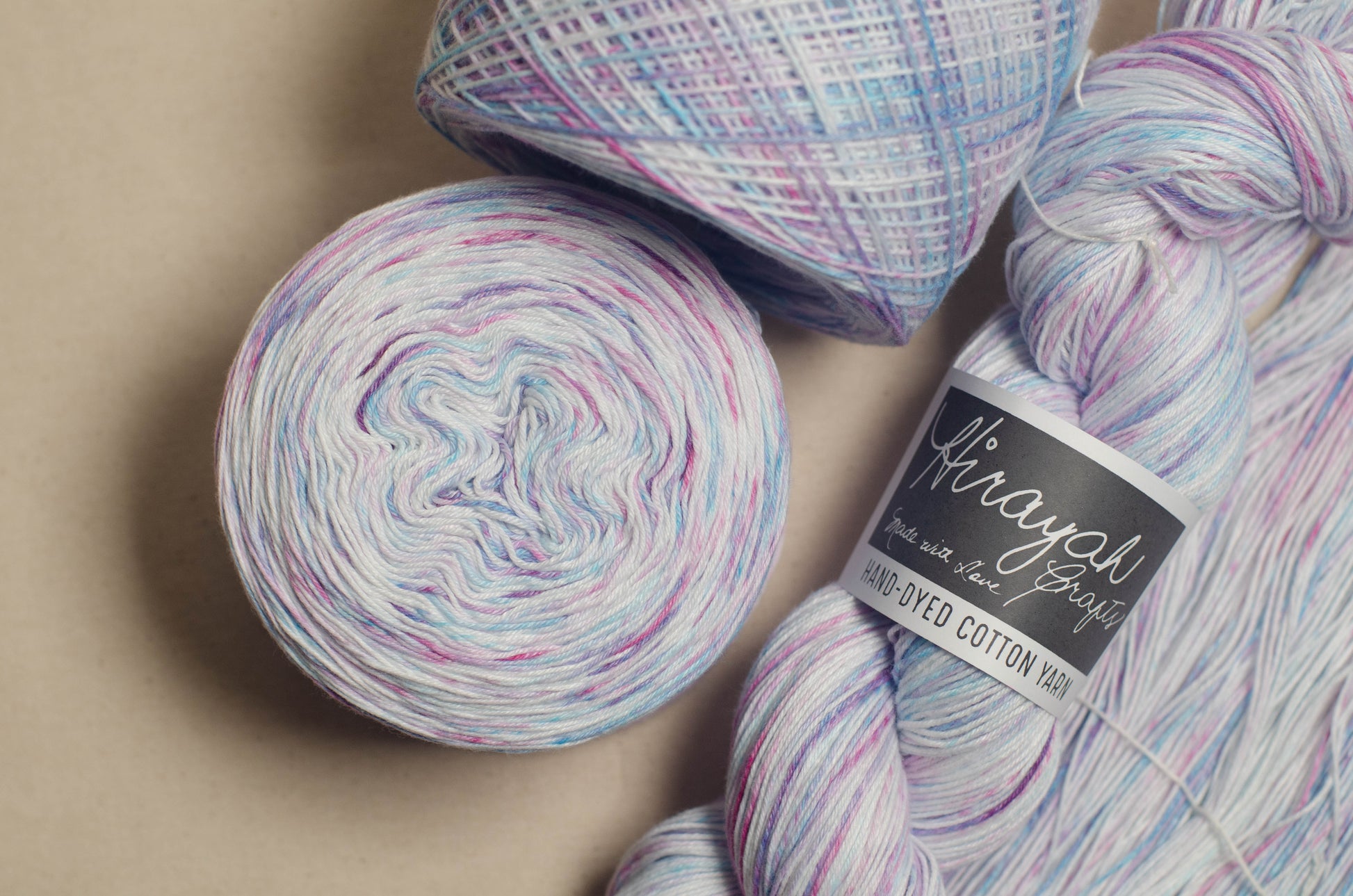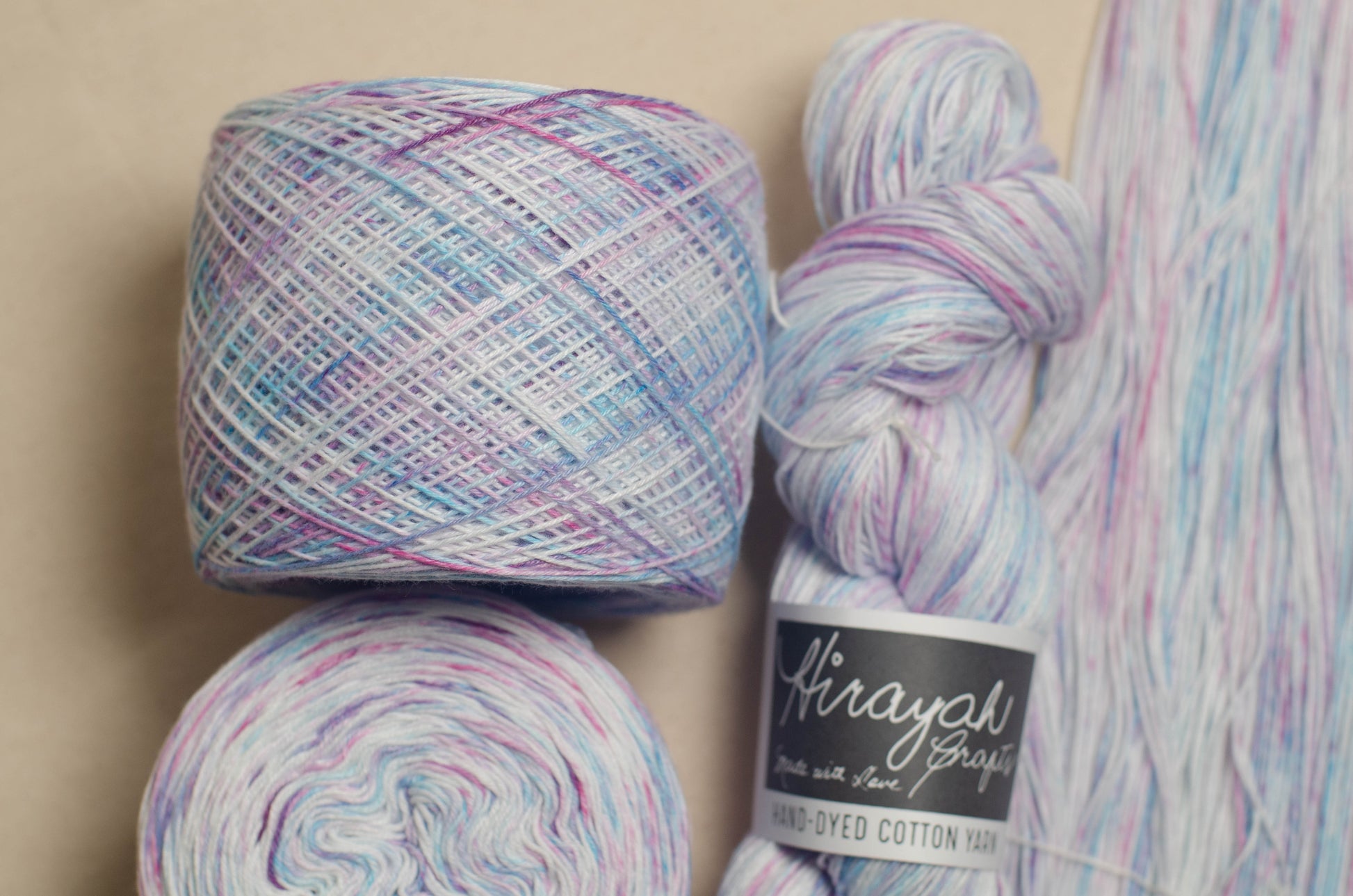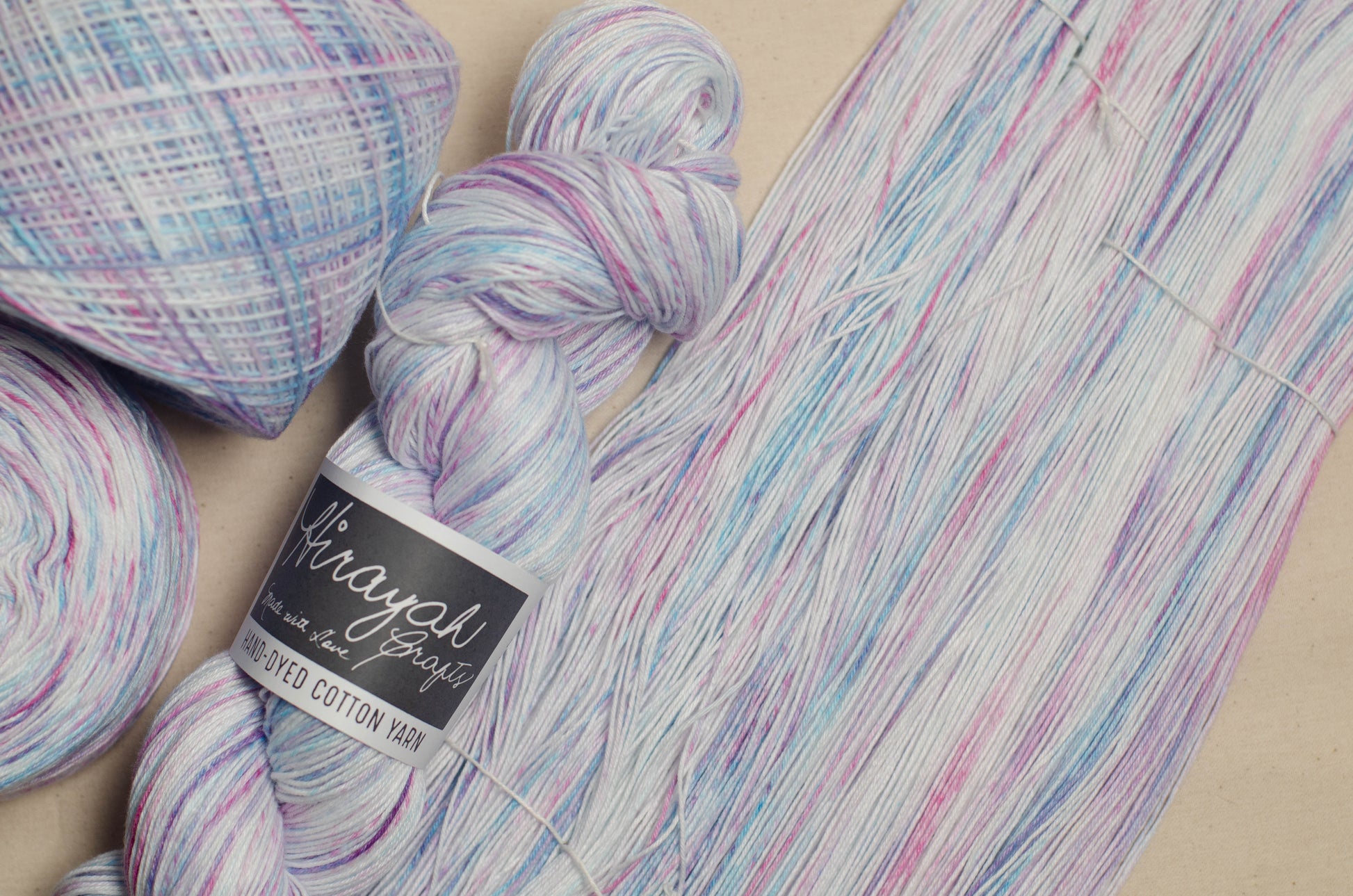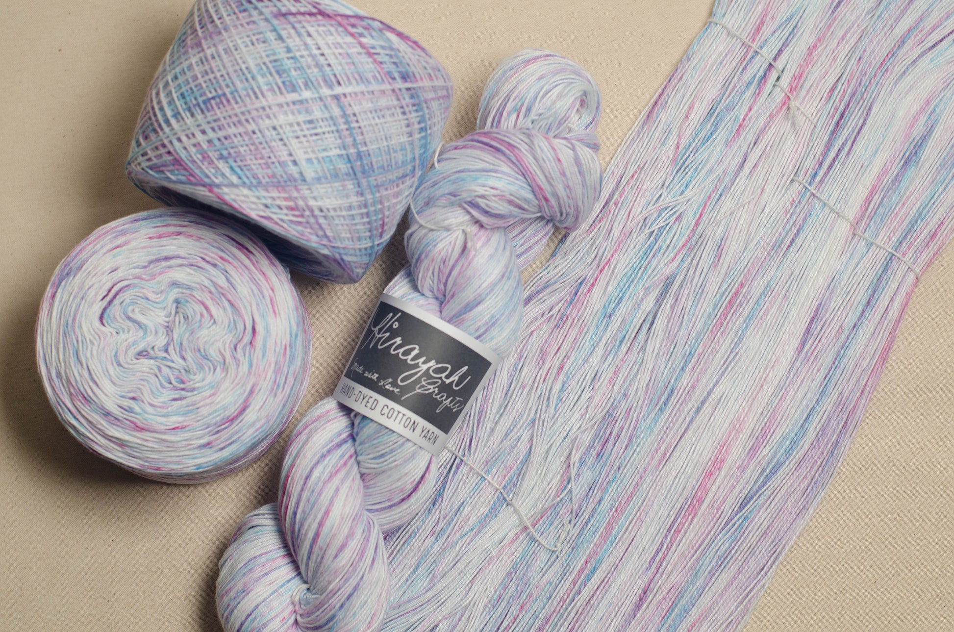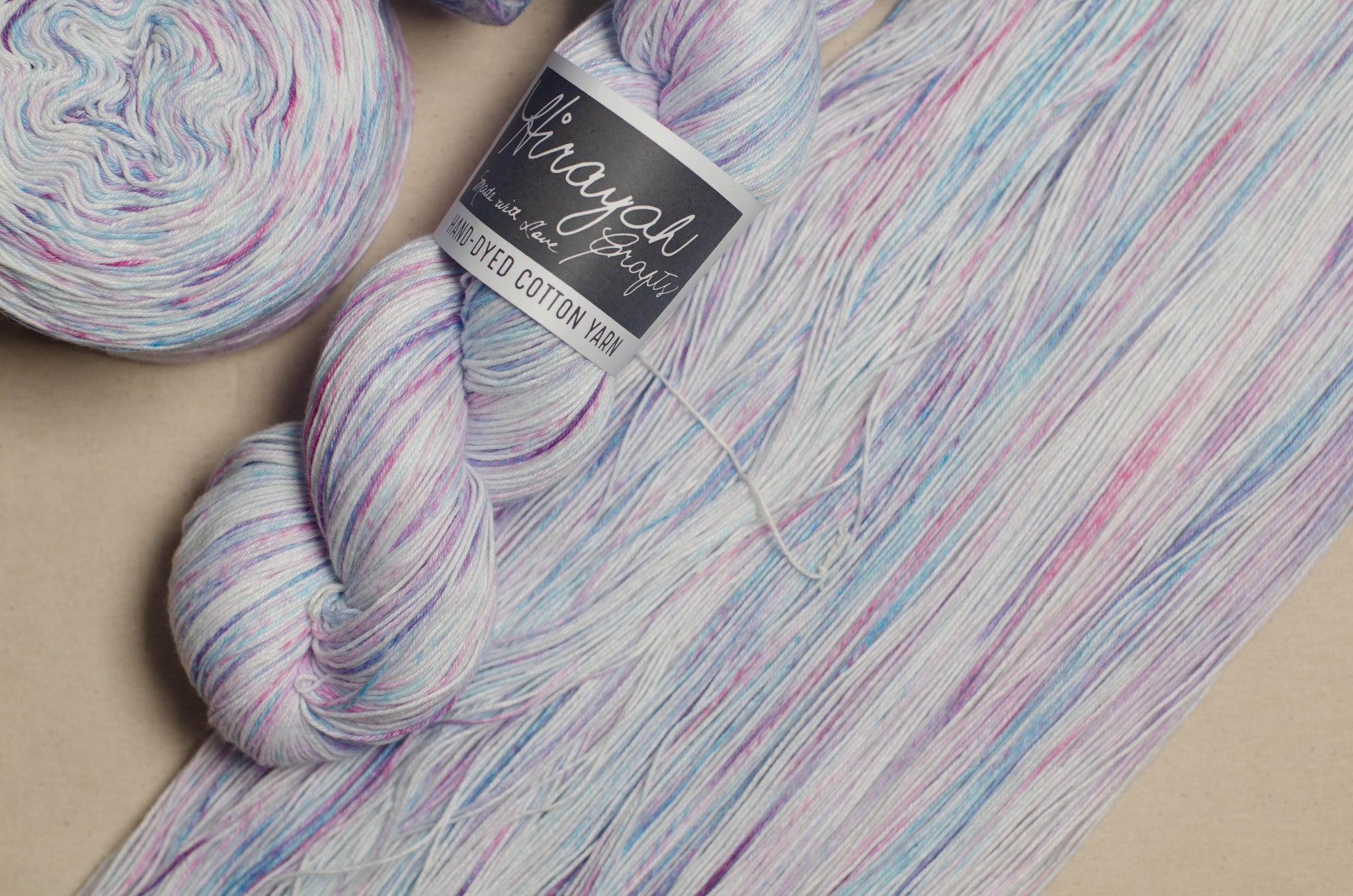 Light worsted weight/ 8ply hand-dyed cotton yarn.