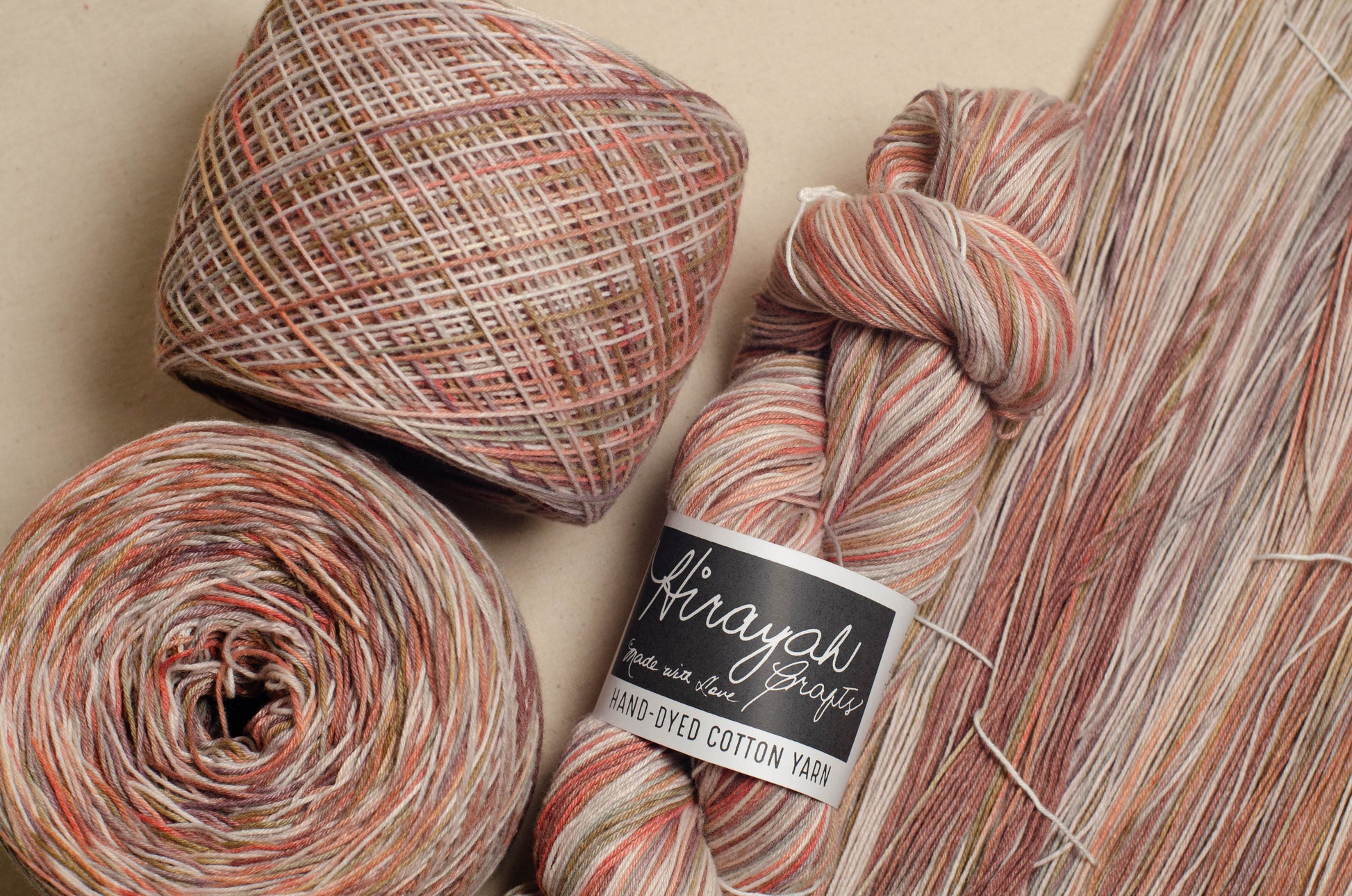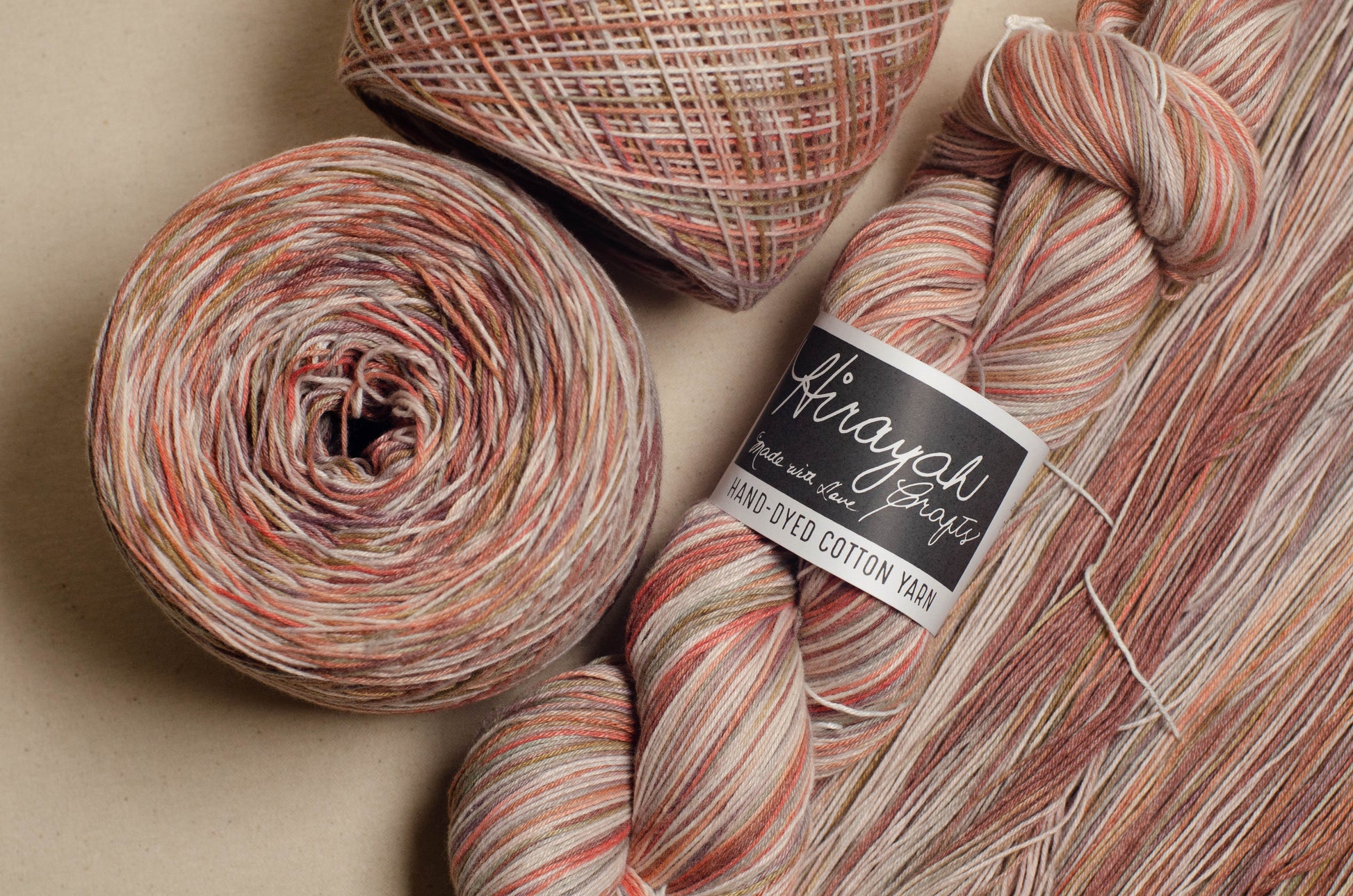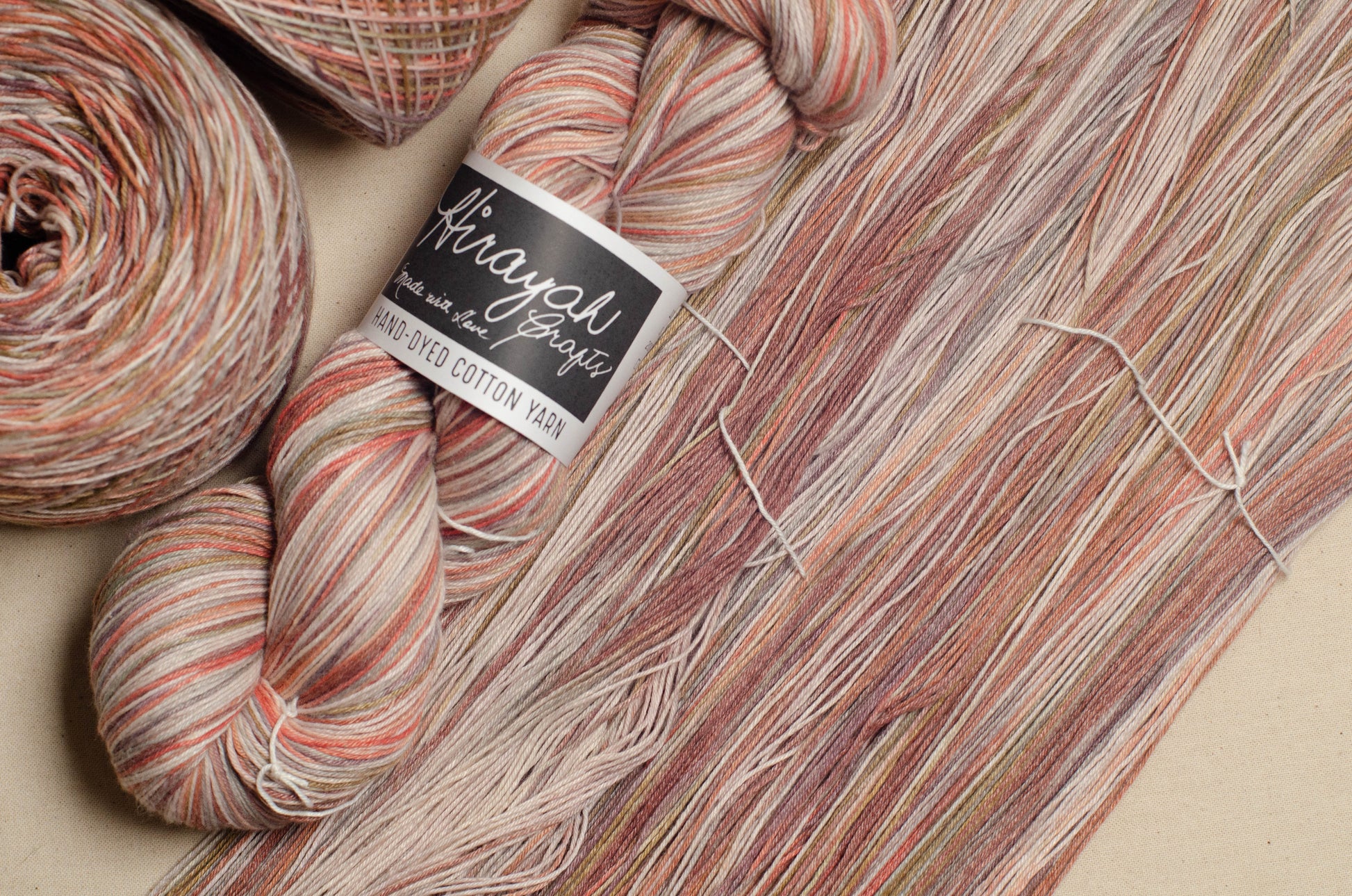 Light worsted weight/ 8ply hand-dyed cotton yarn.