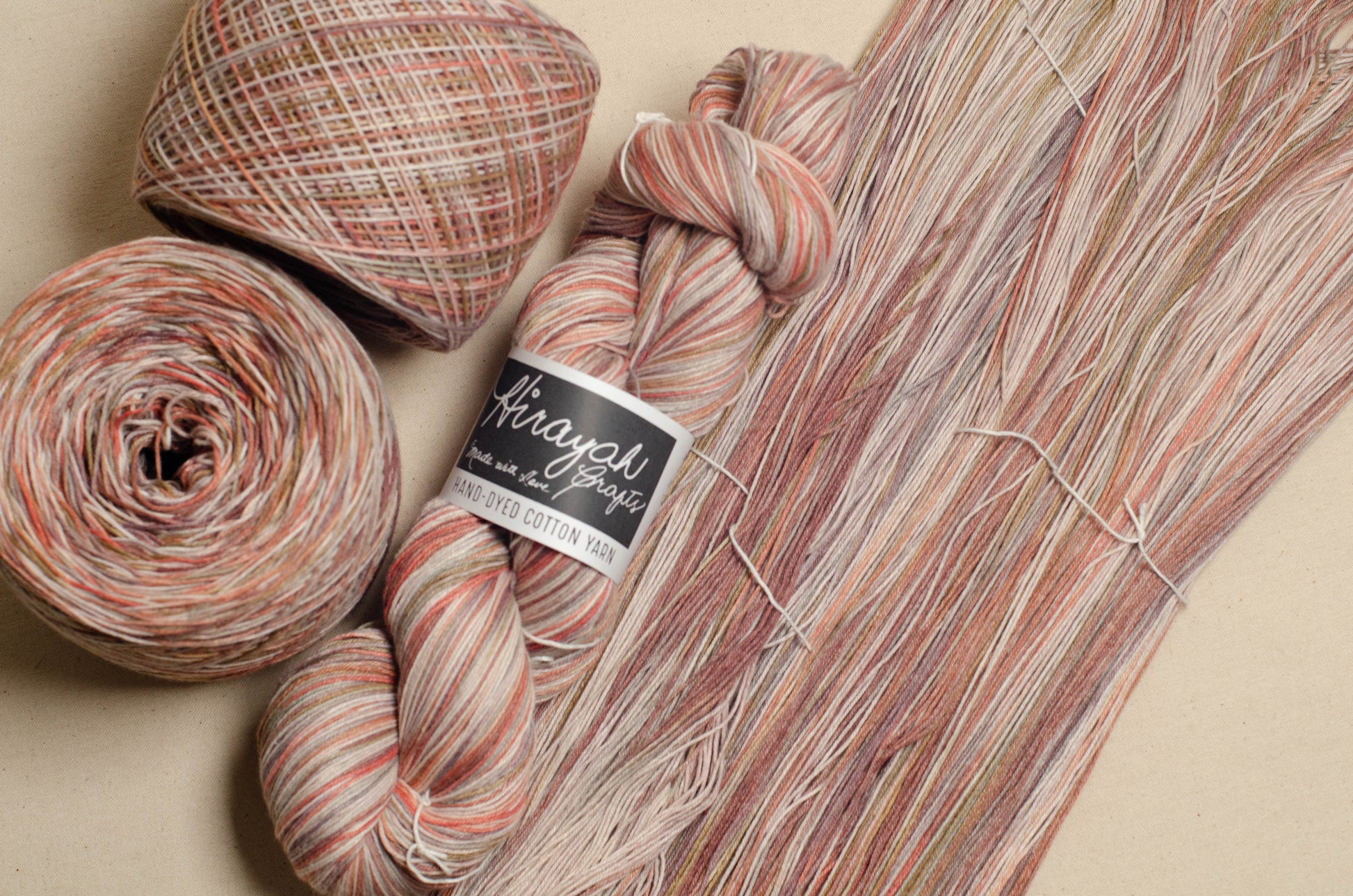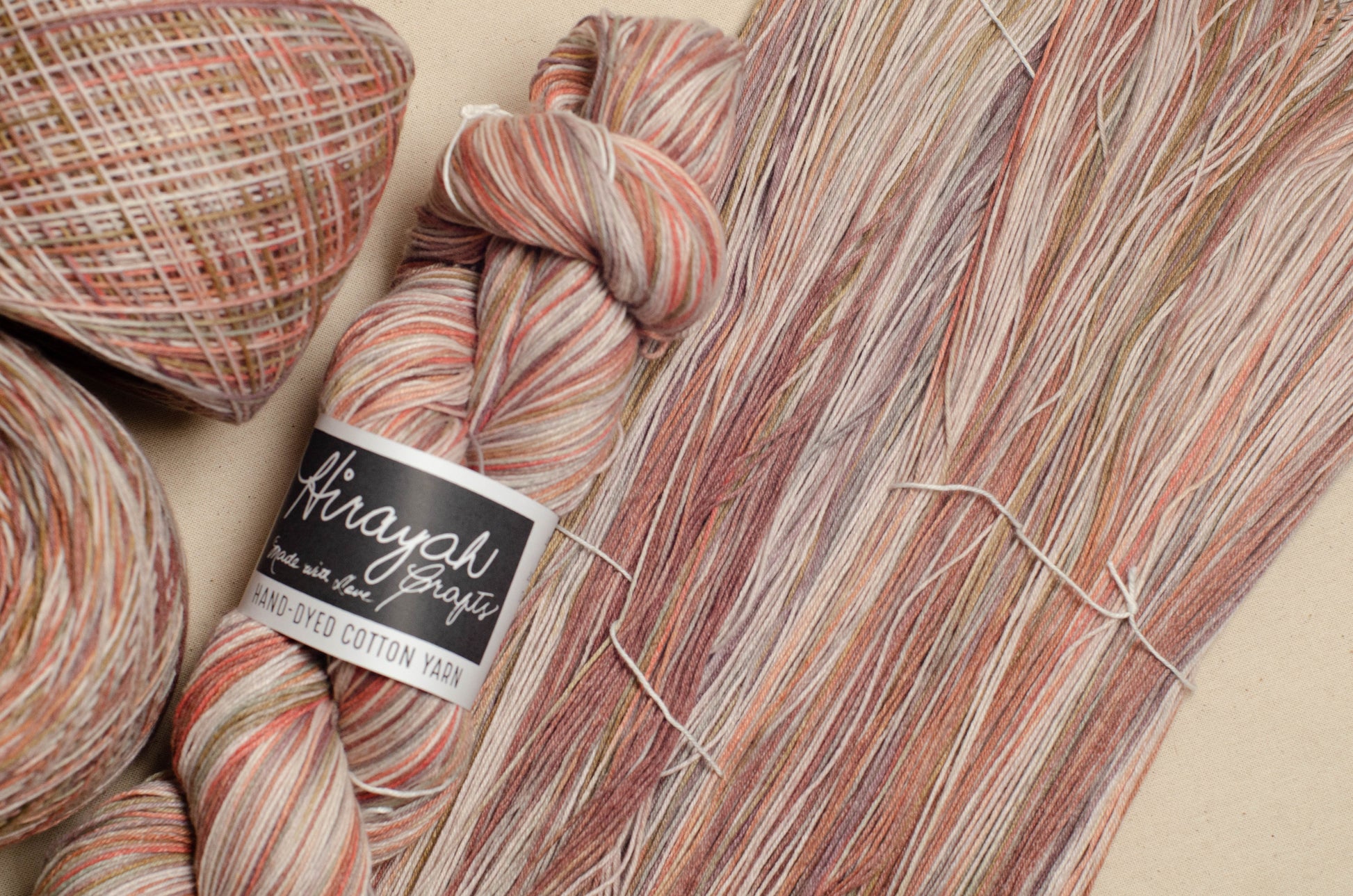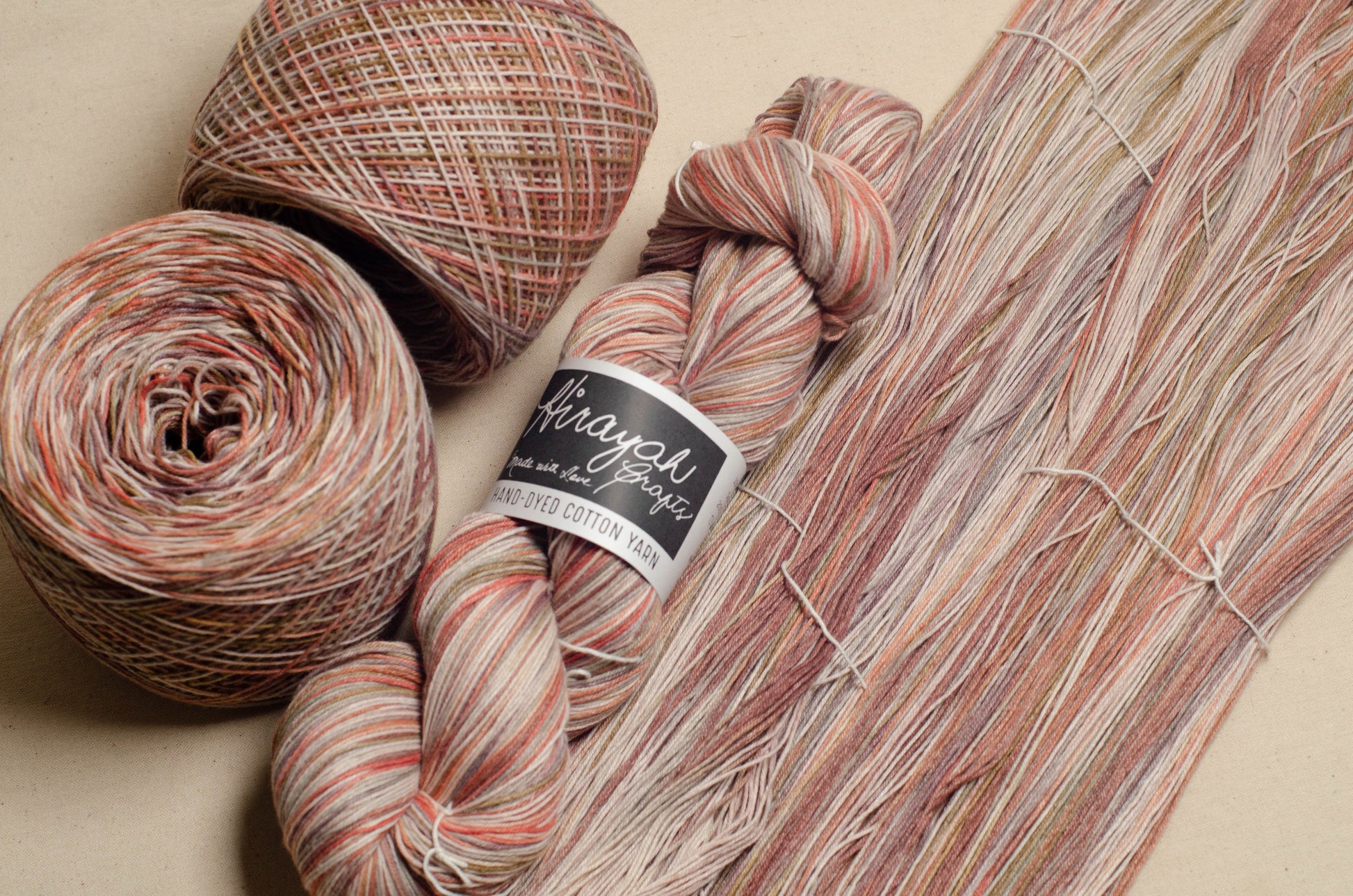 Light worsted weight/ 8ply hand-dyed cotton yarn.