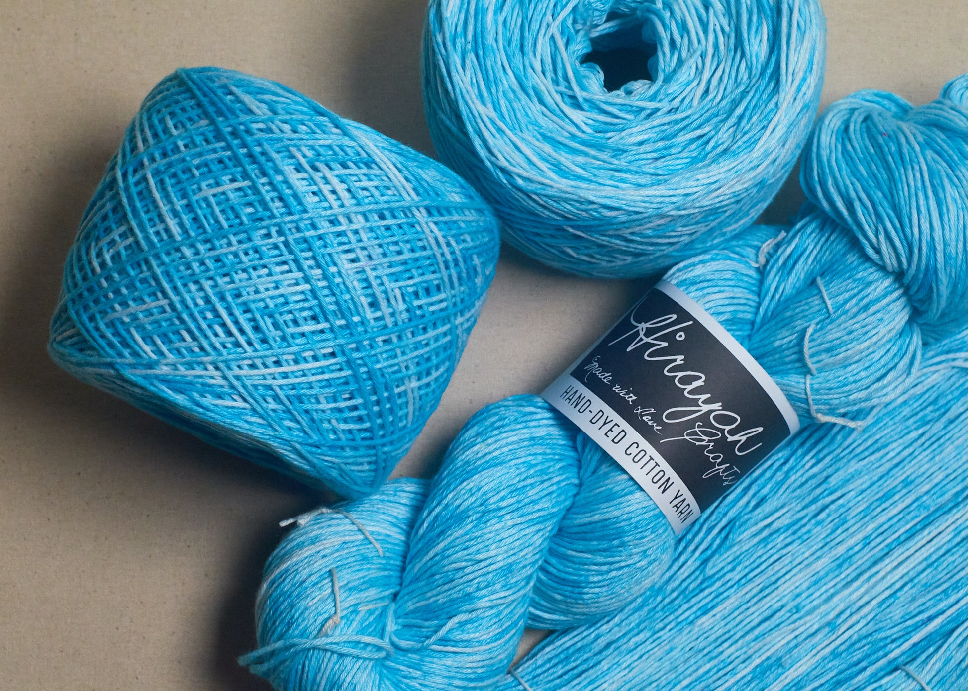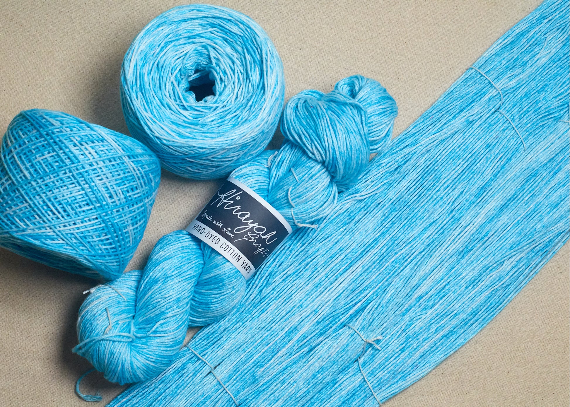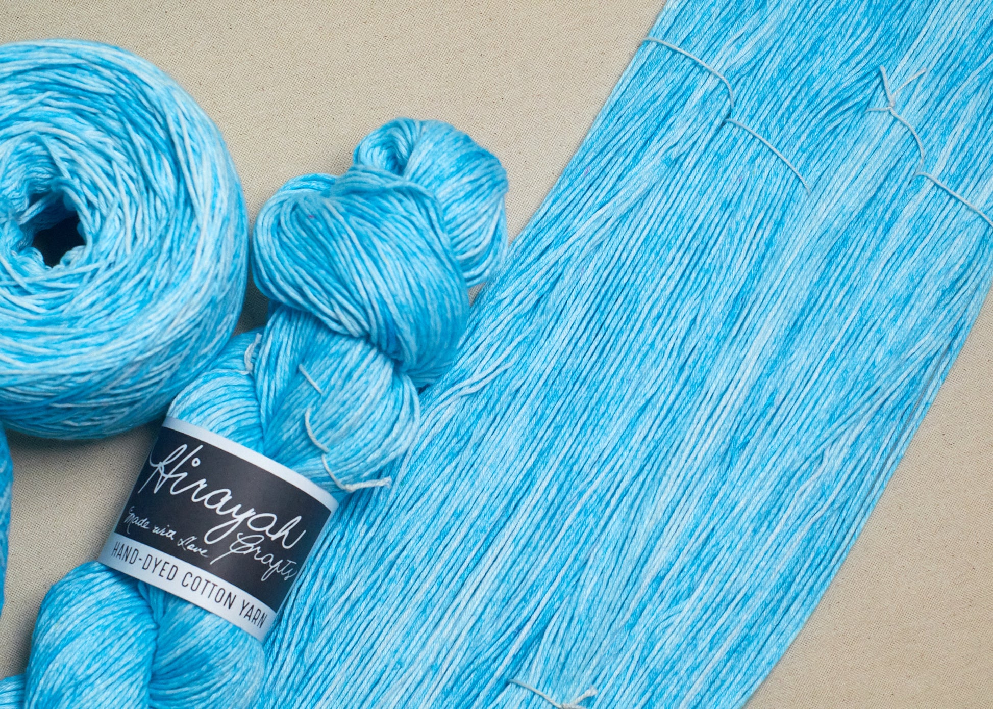 Light worsted weight/ 8ply hand-dyed cotton yarn.