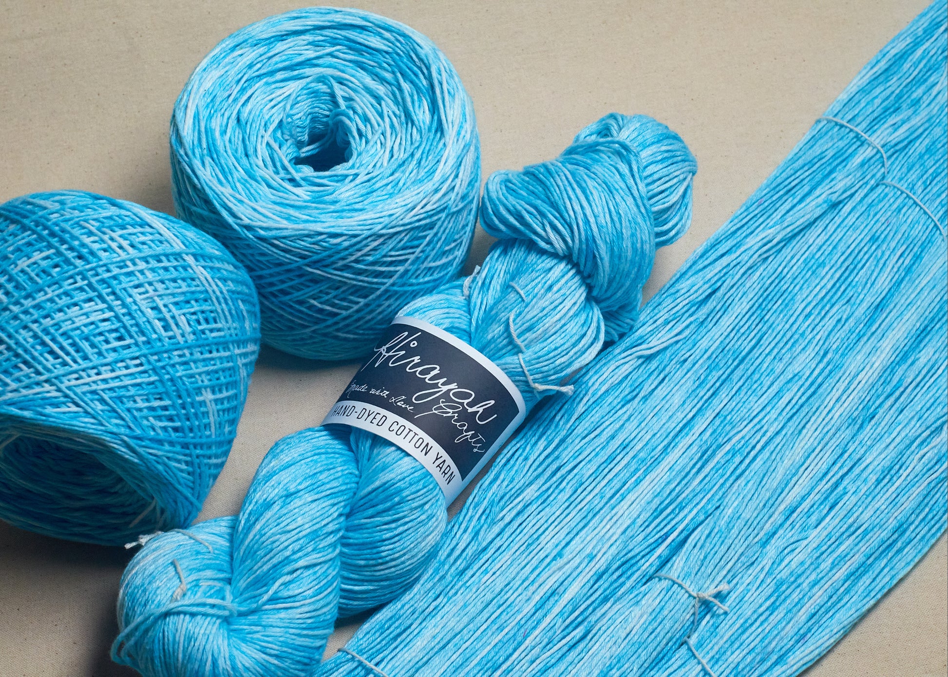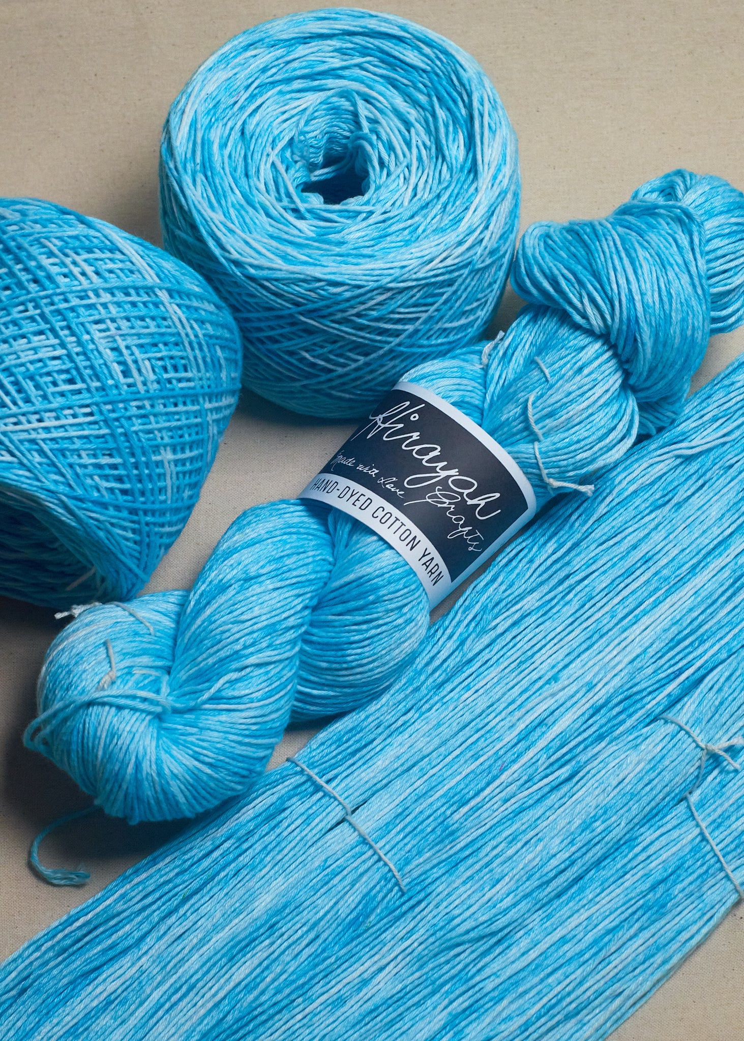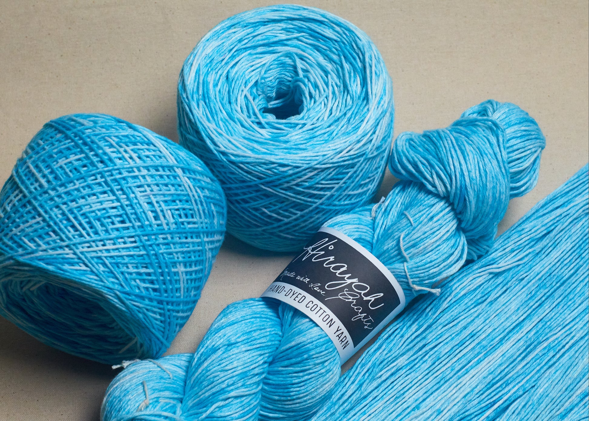 Light worsted weight/ 8ply hand-dyed cotton yarn.