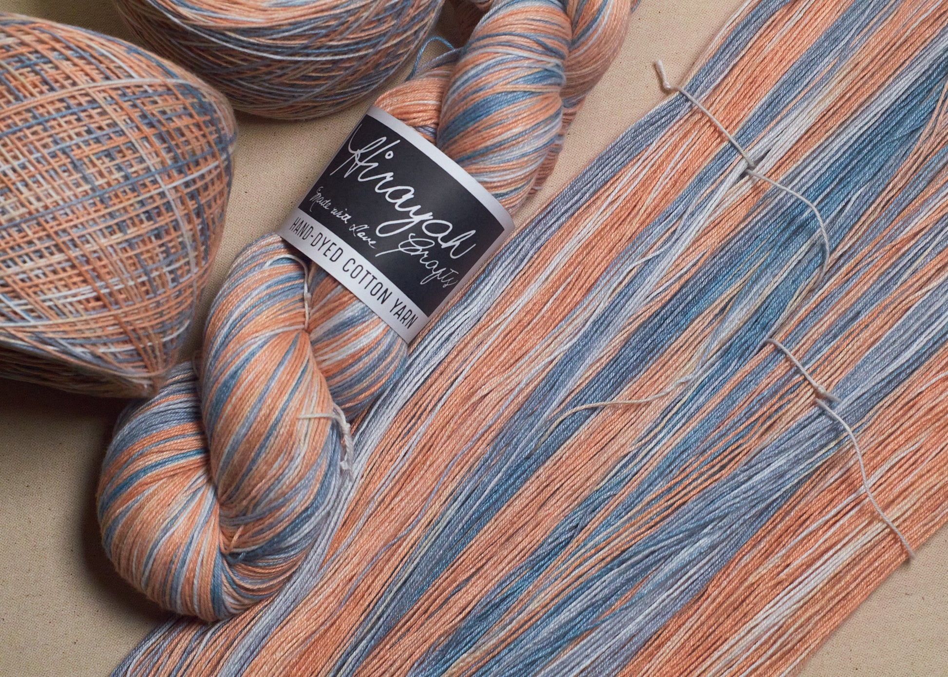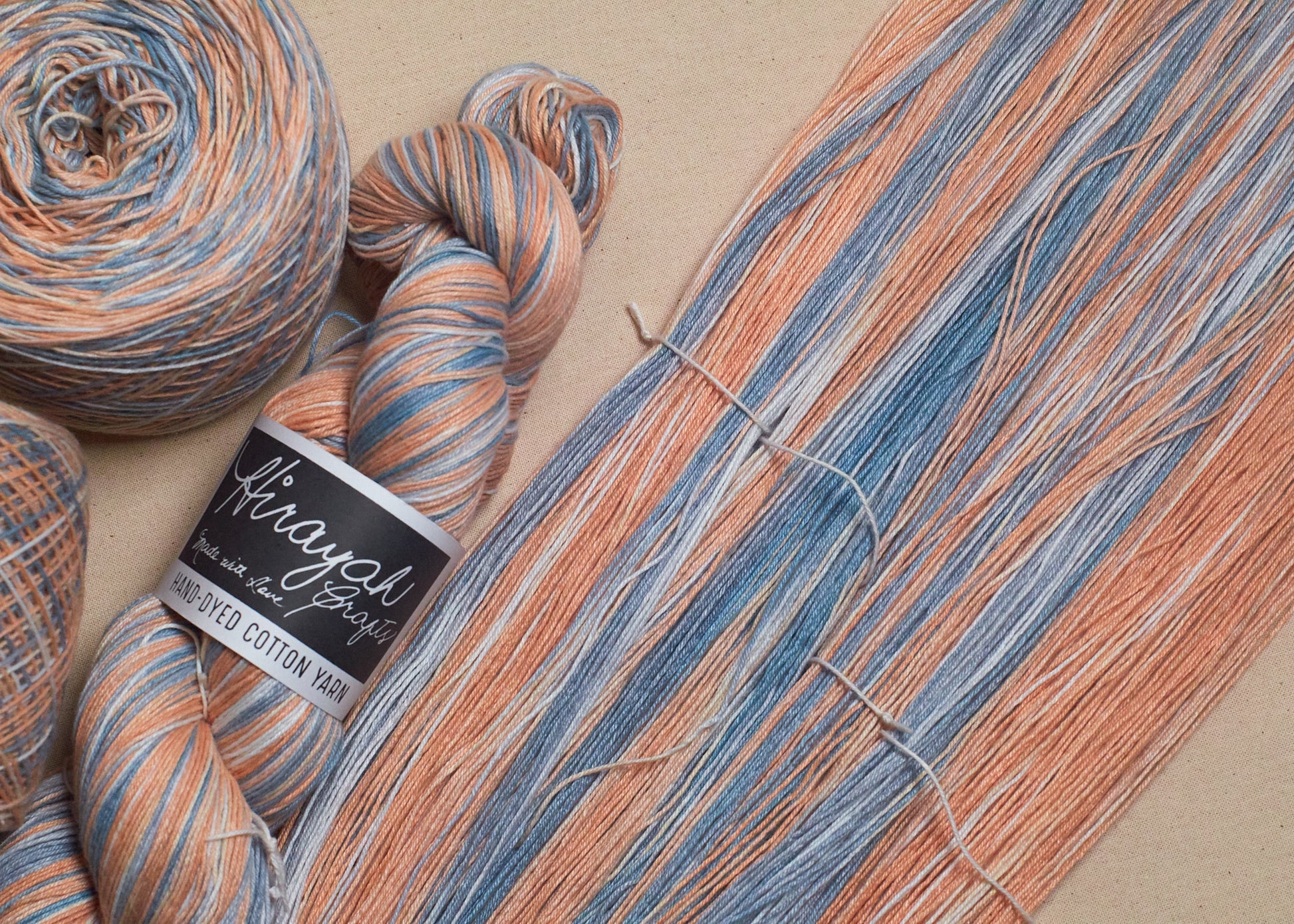 Light worsted weight/ 8ply hand-dyed cotton yarn.