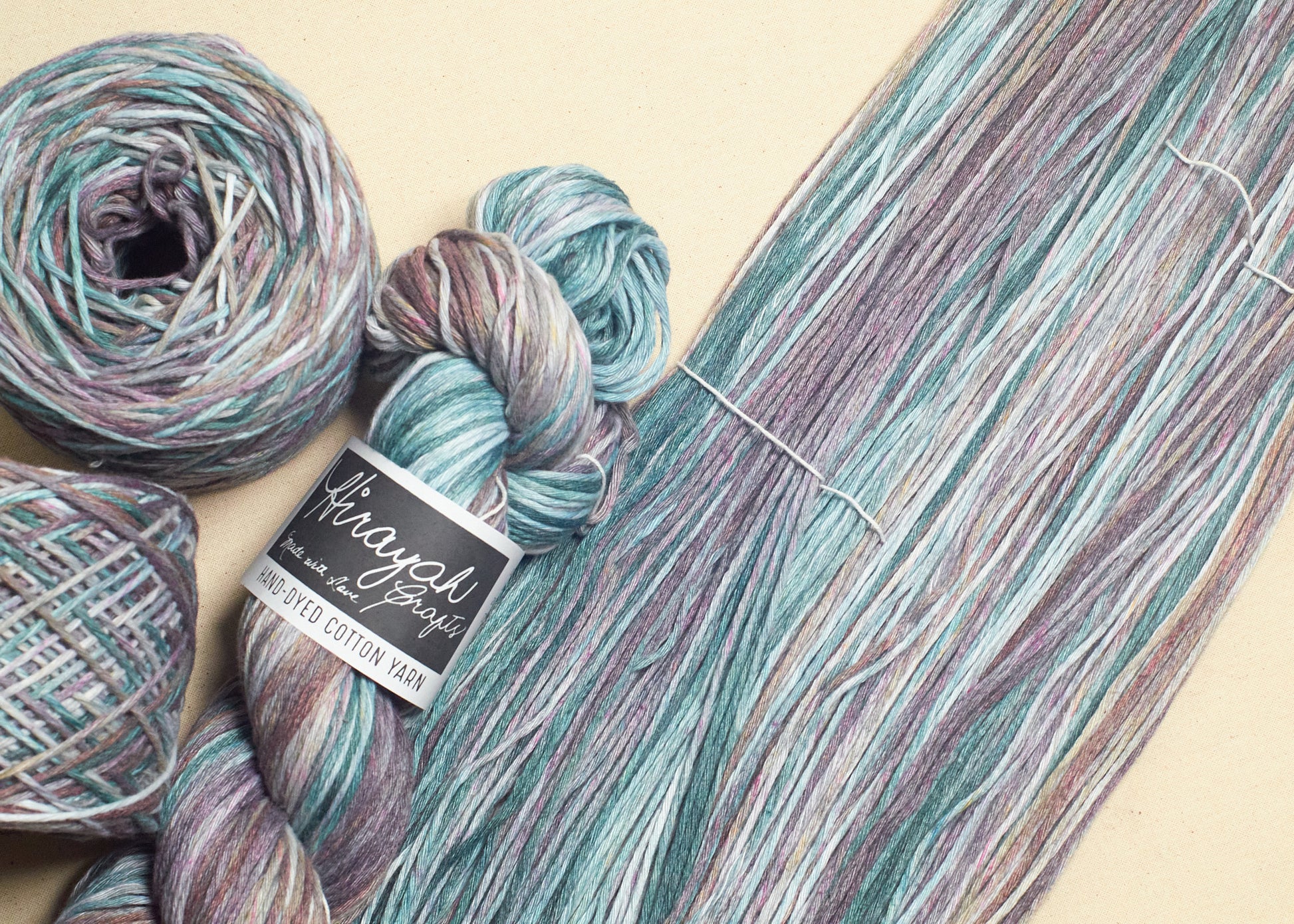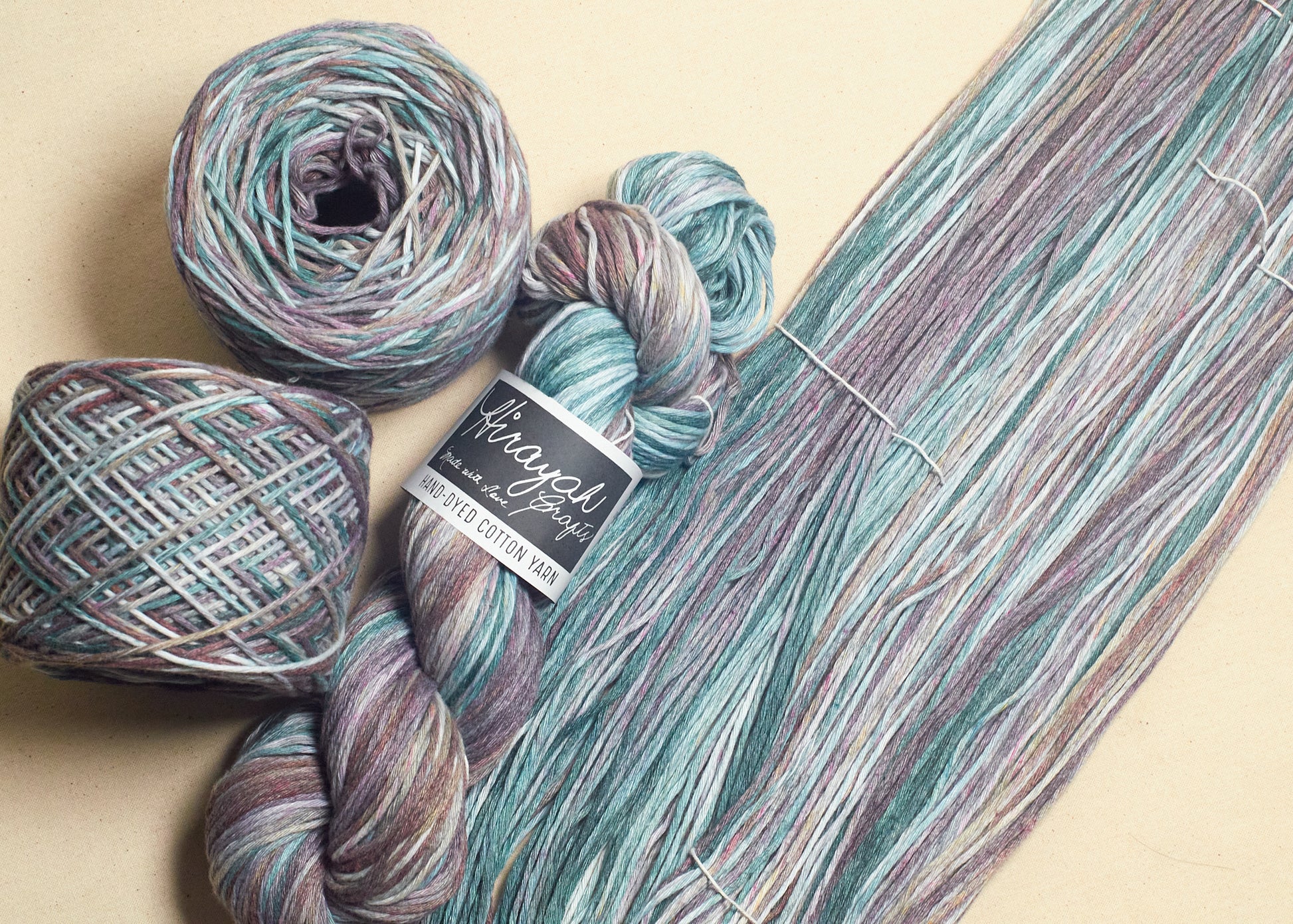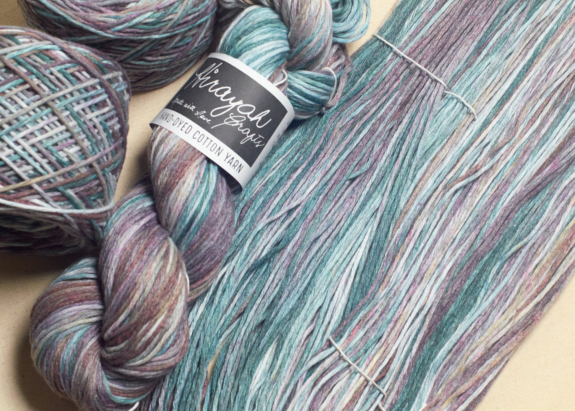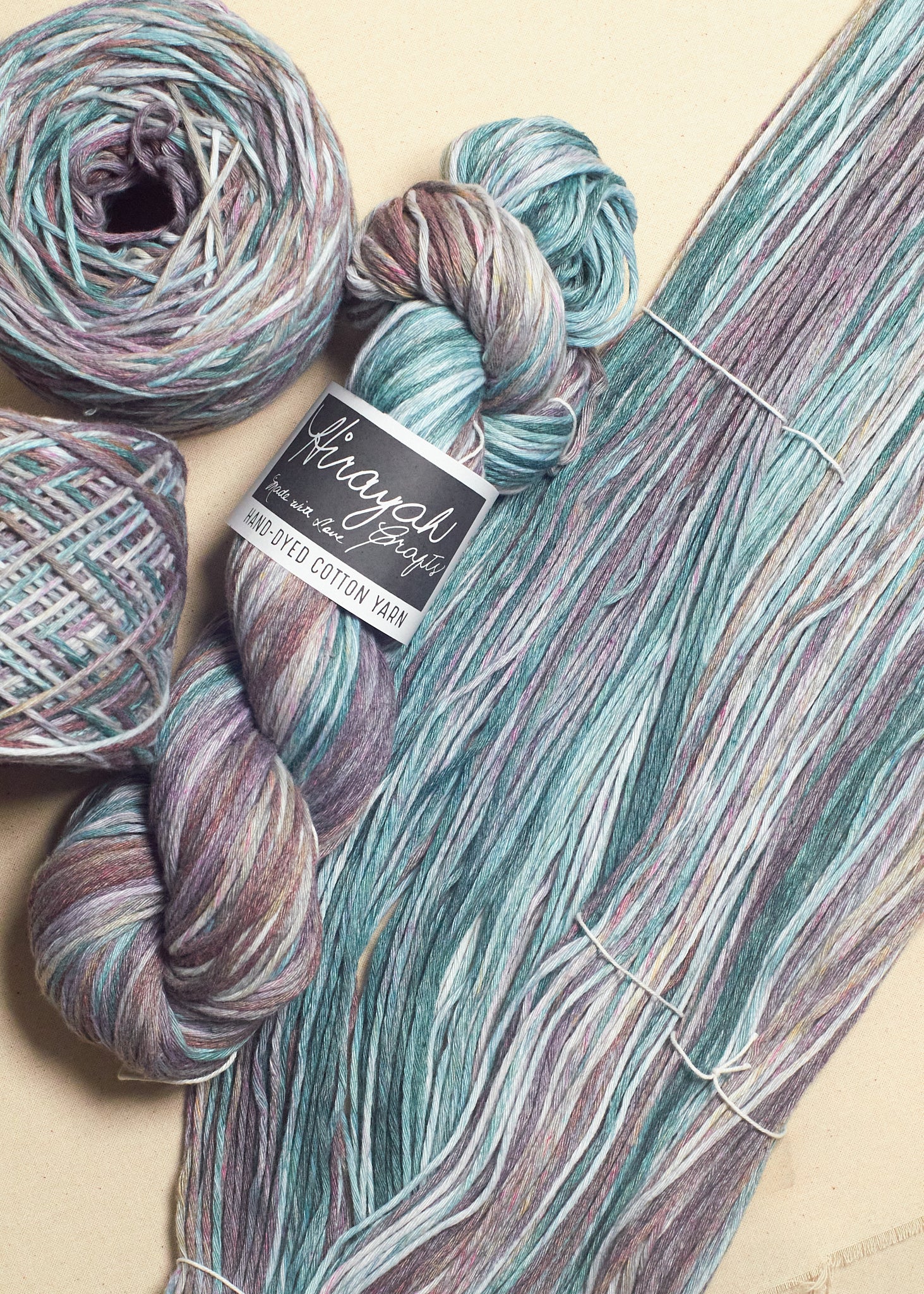 Light worsted weight/ 8ply hand-dyed cotton yarn.