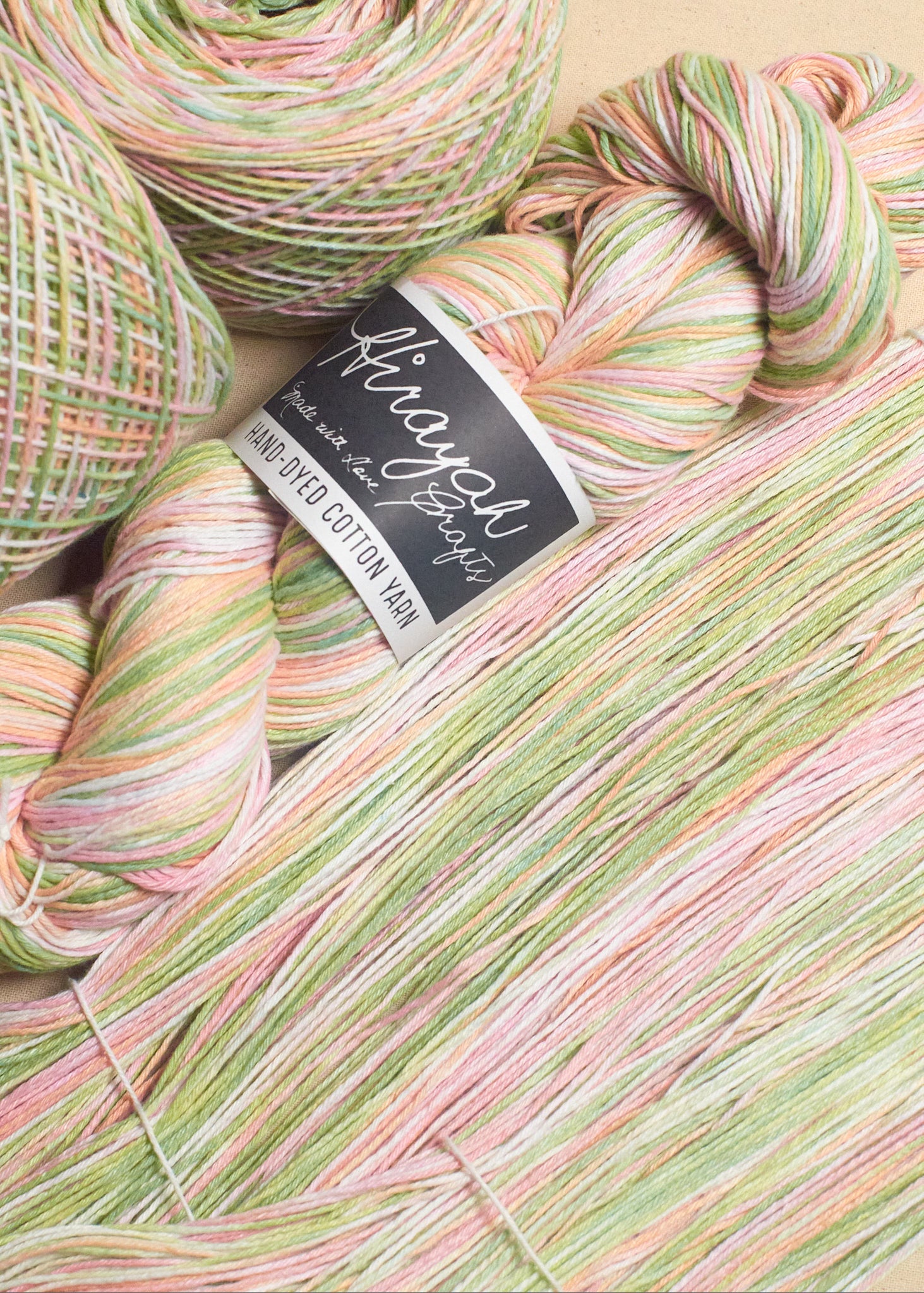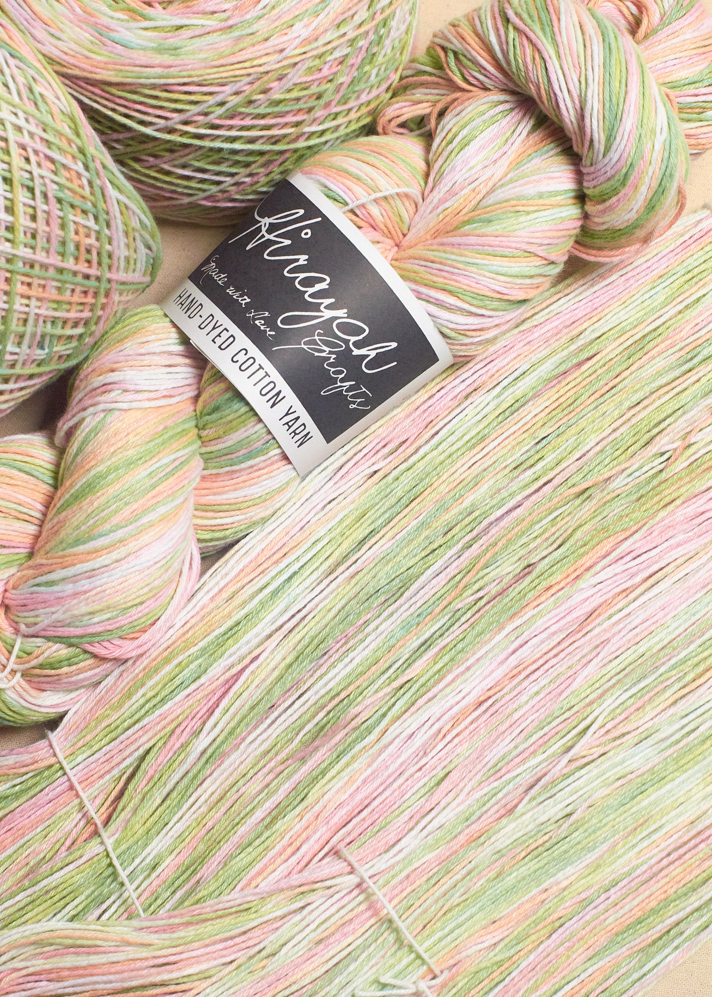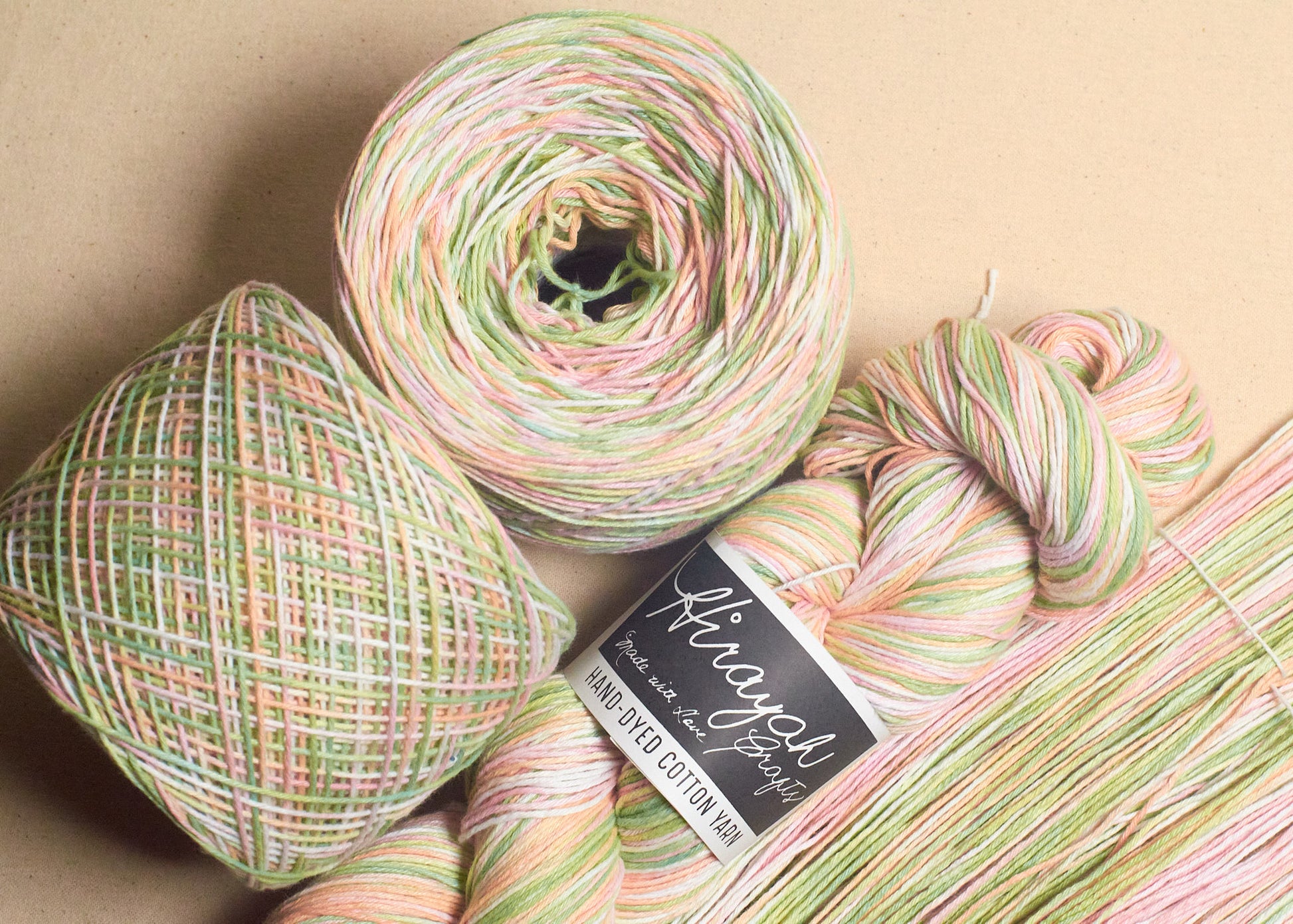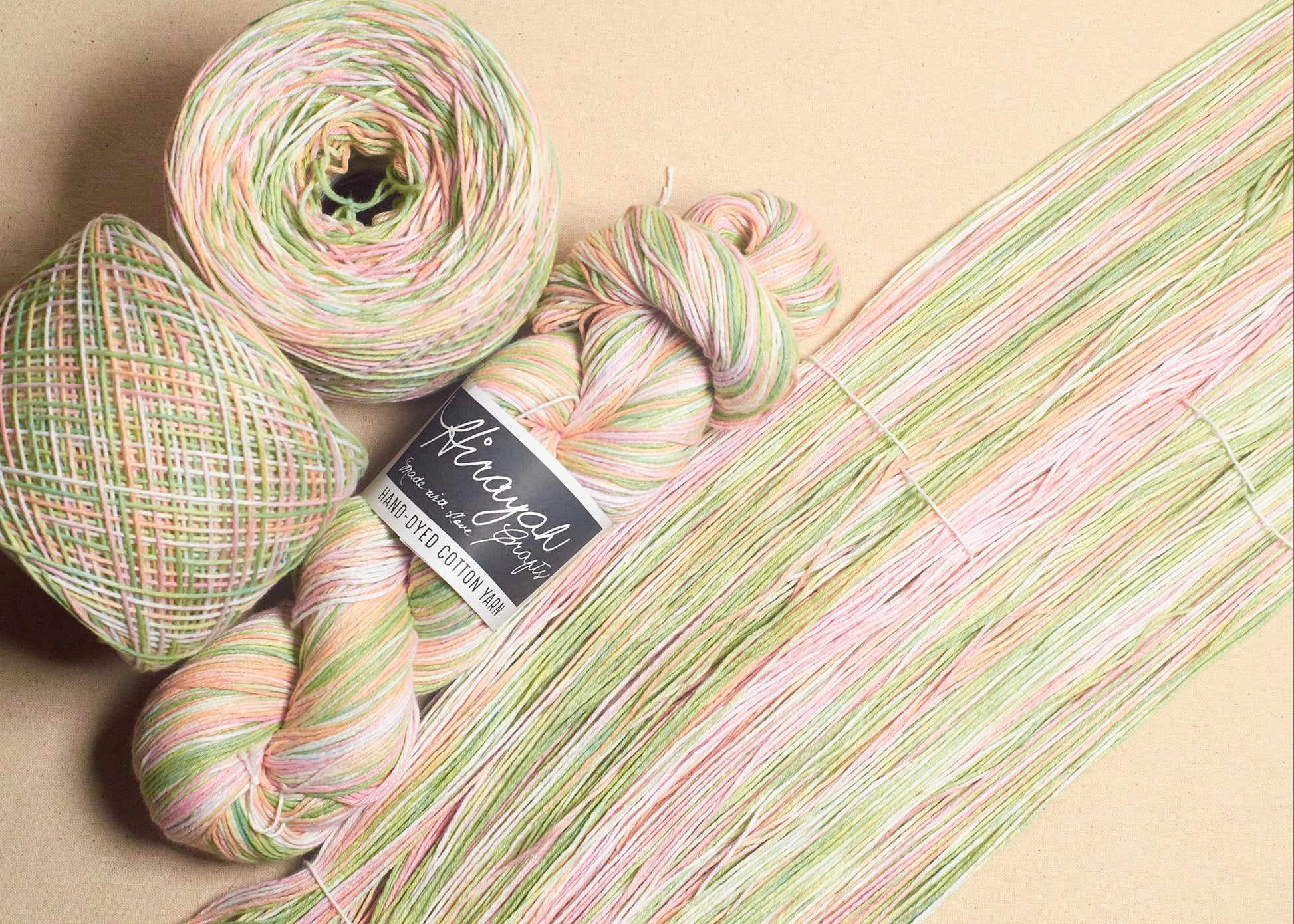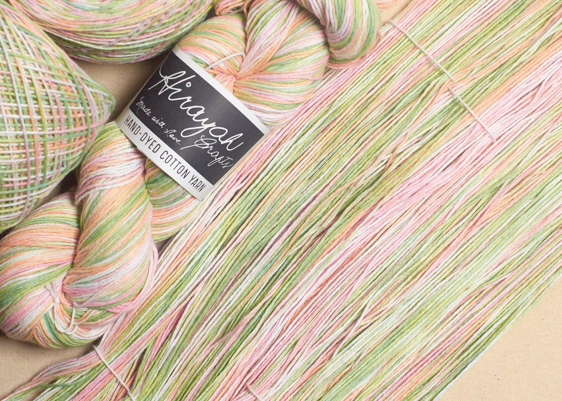Light worsted weight/ 8ply hand-dyed cotton yarn.