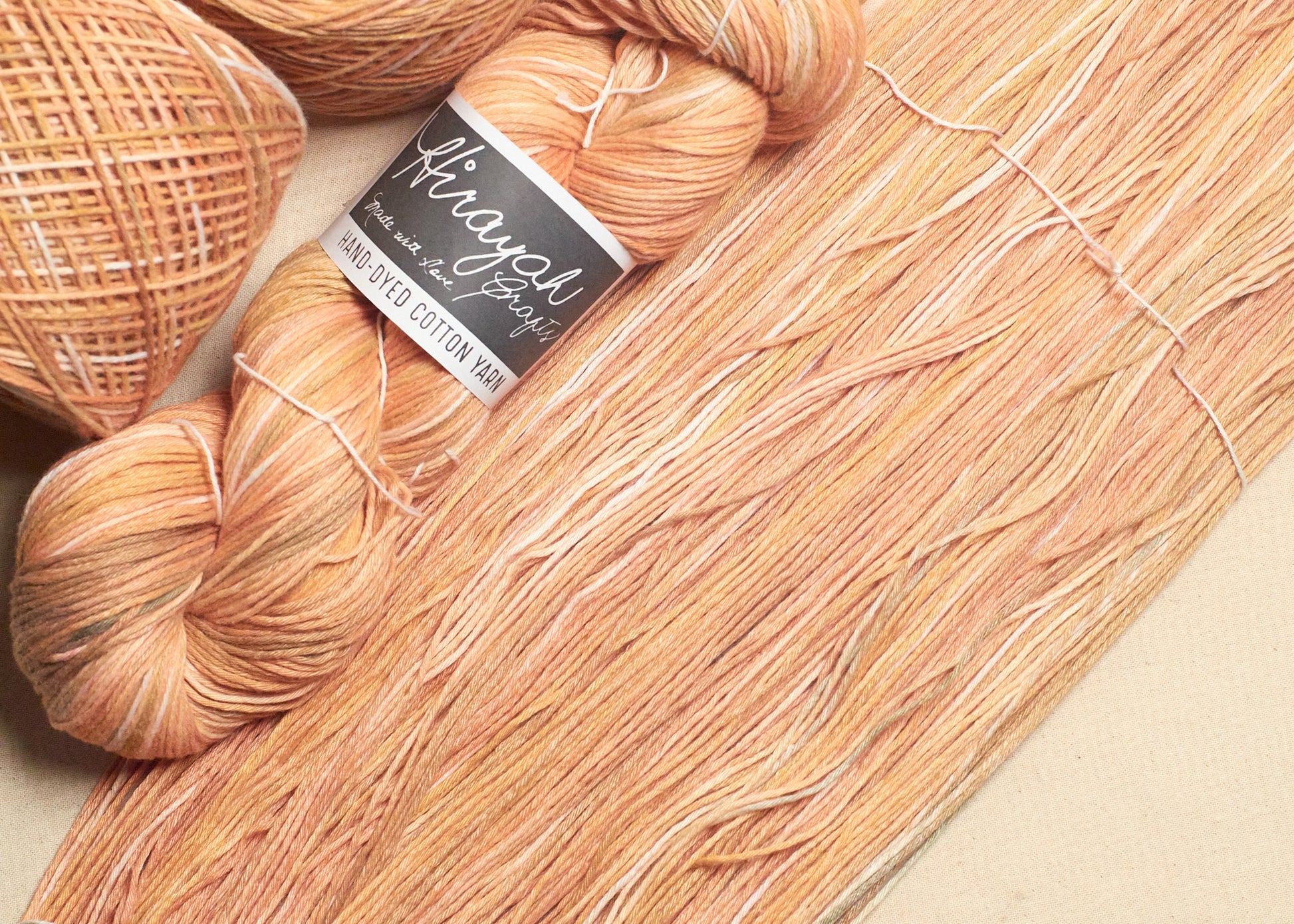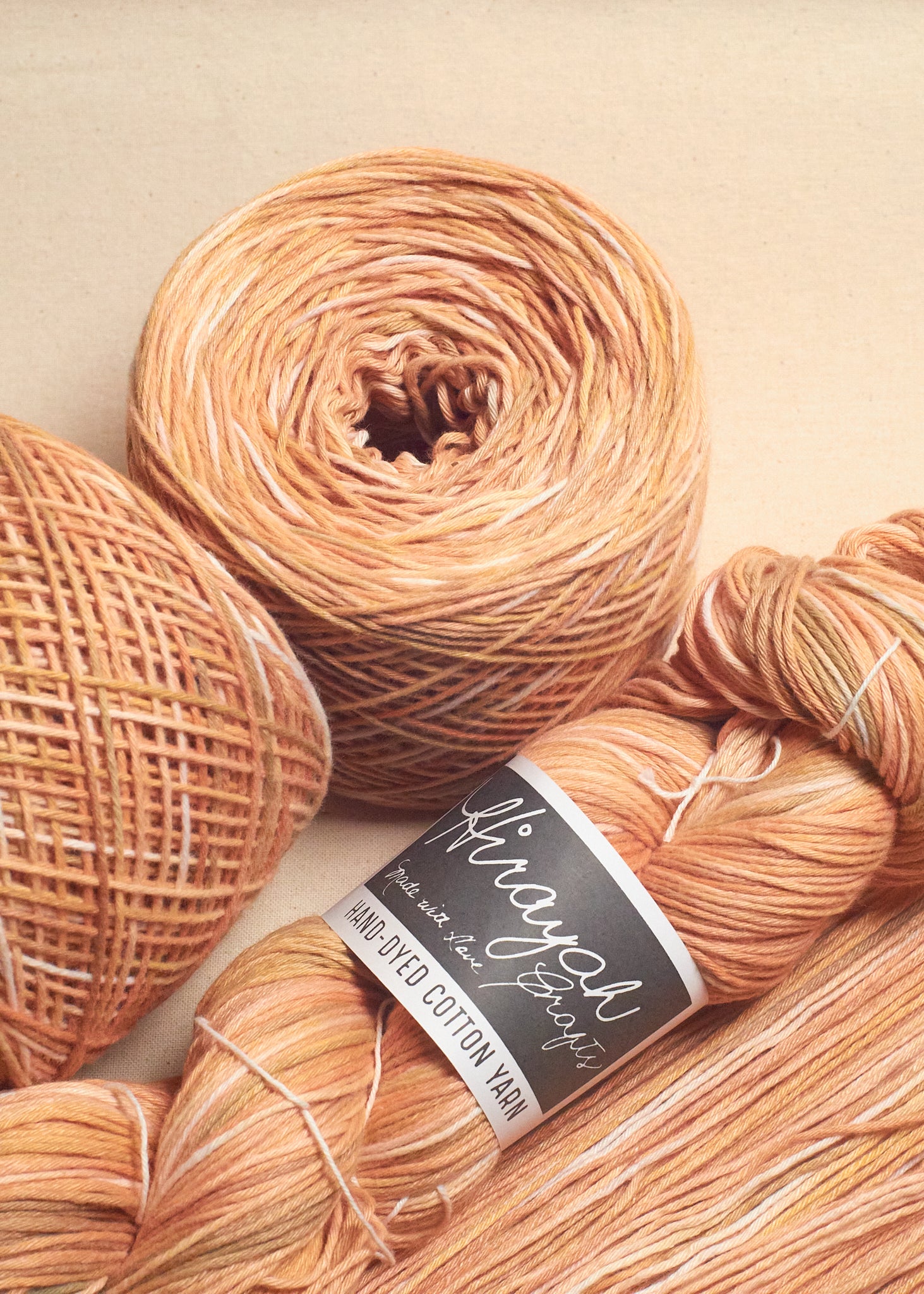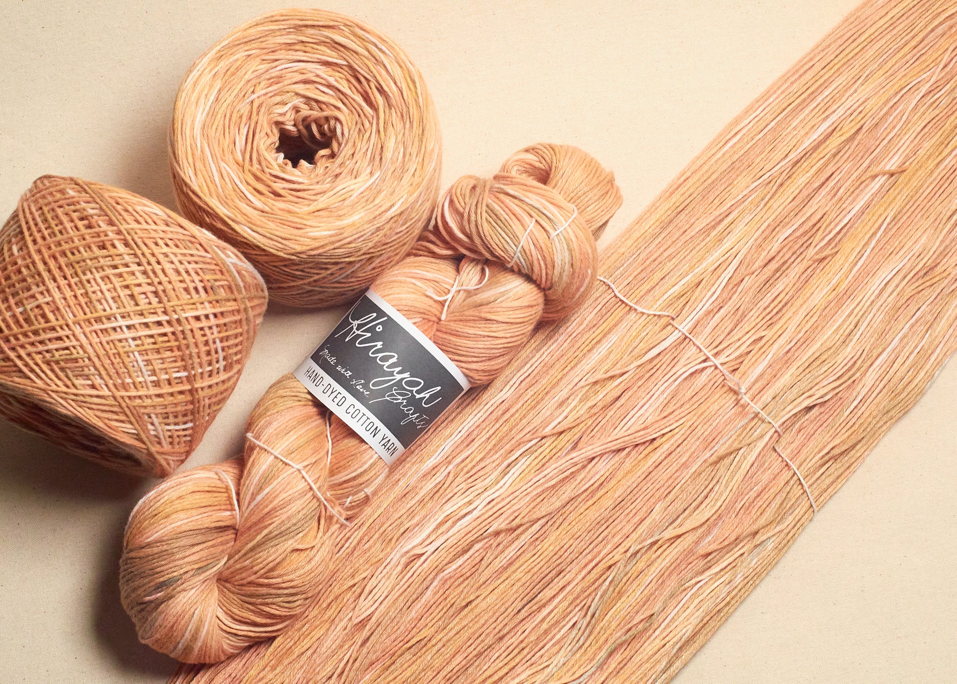 Light worsted weight/ 8ply hand-dyed cotton yarn.