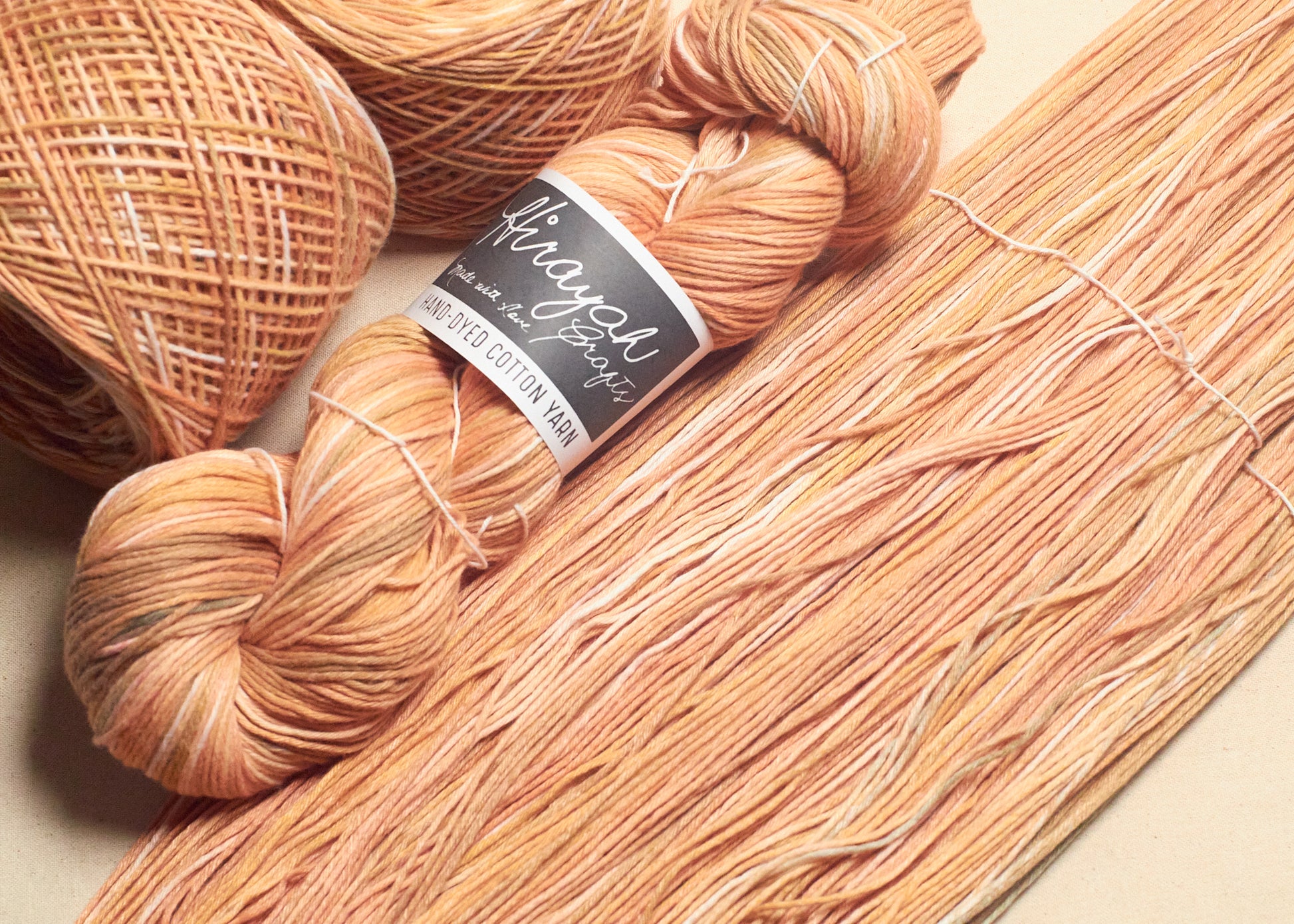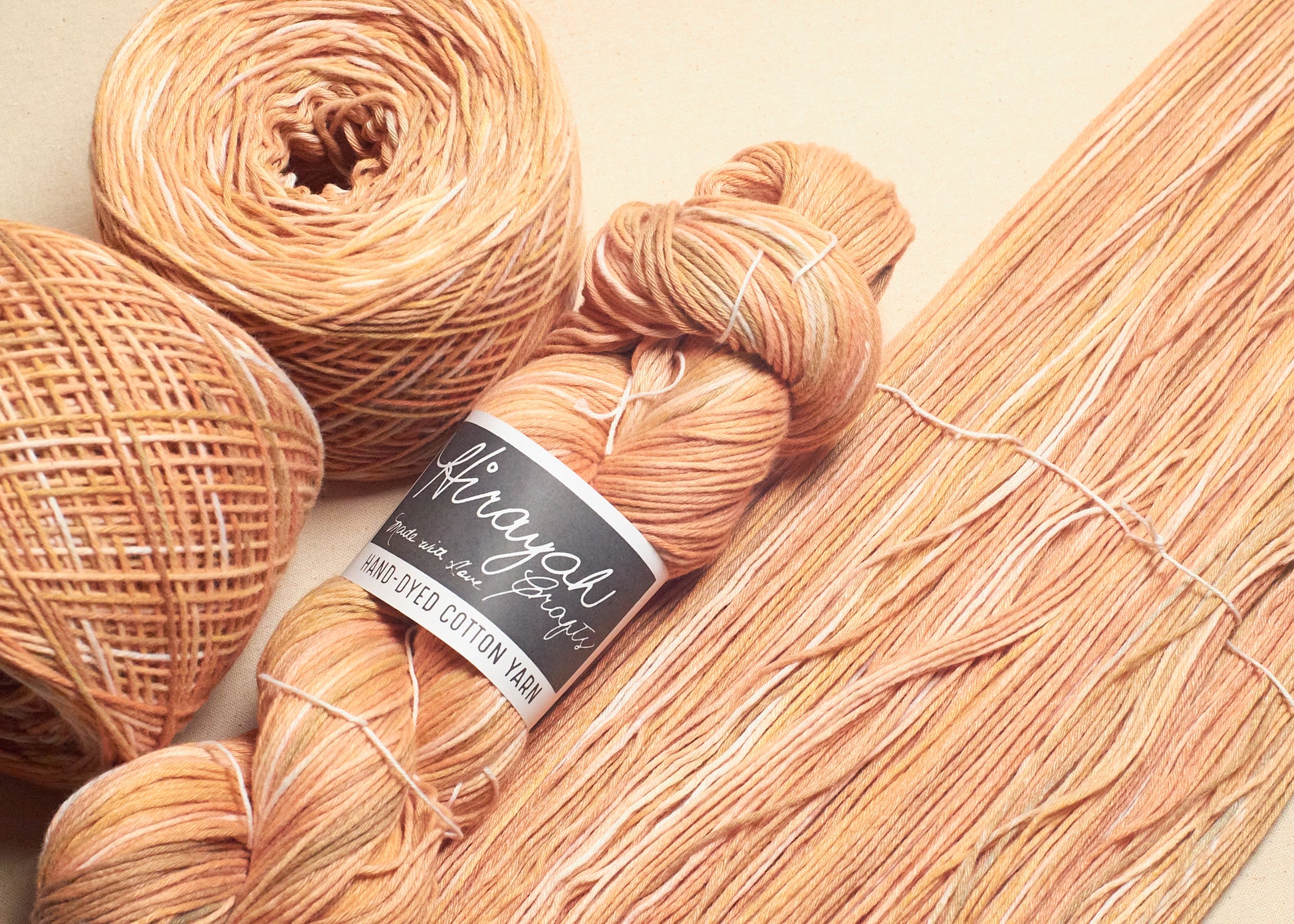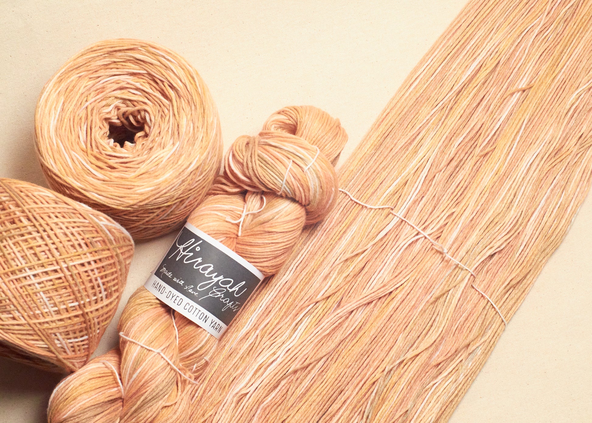 Light worsted weight/ 8ply hand-dyed cotton yarn.
