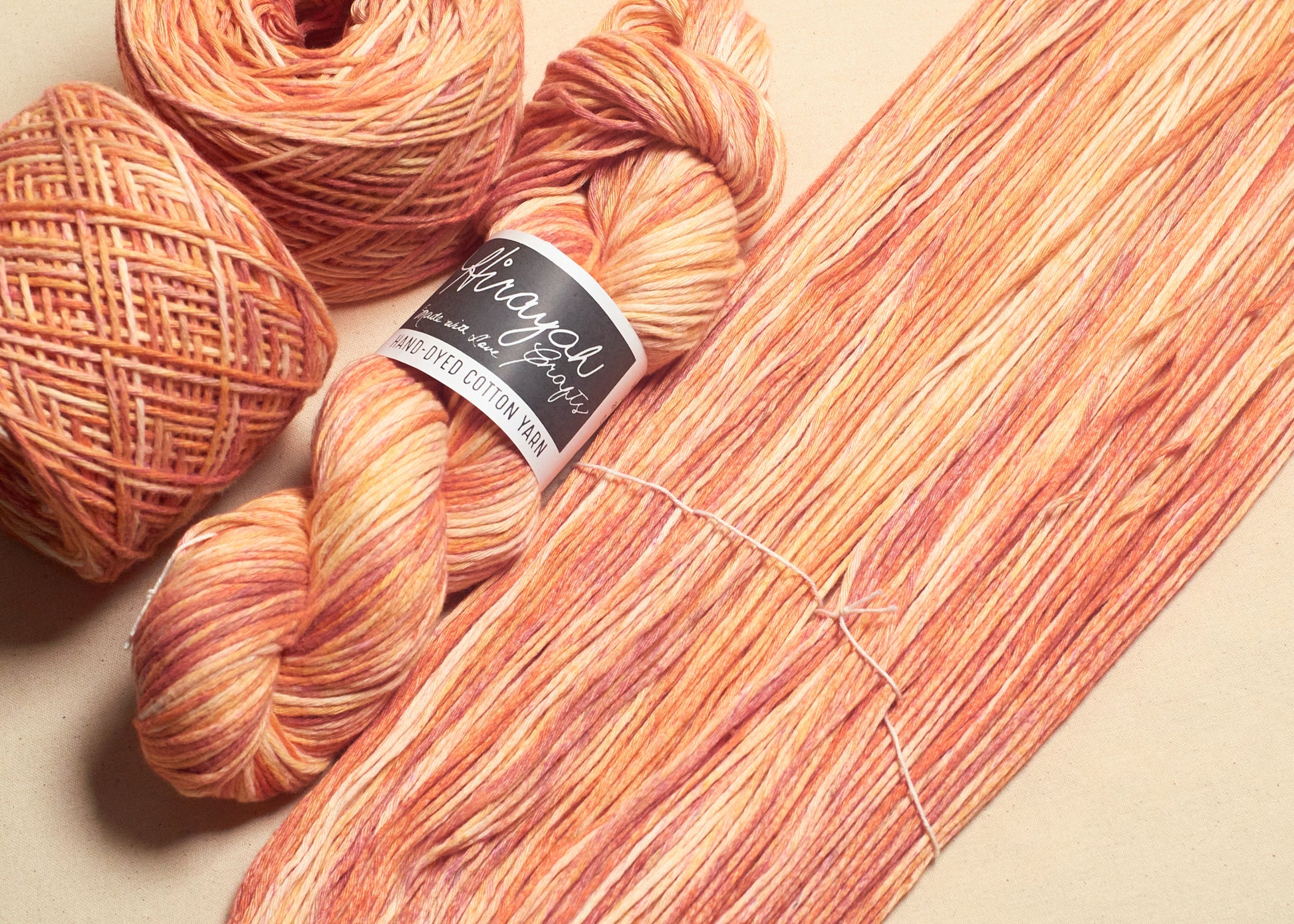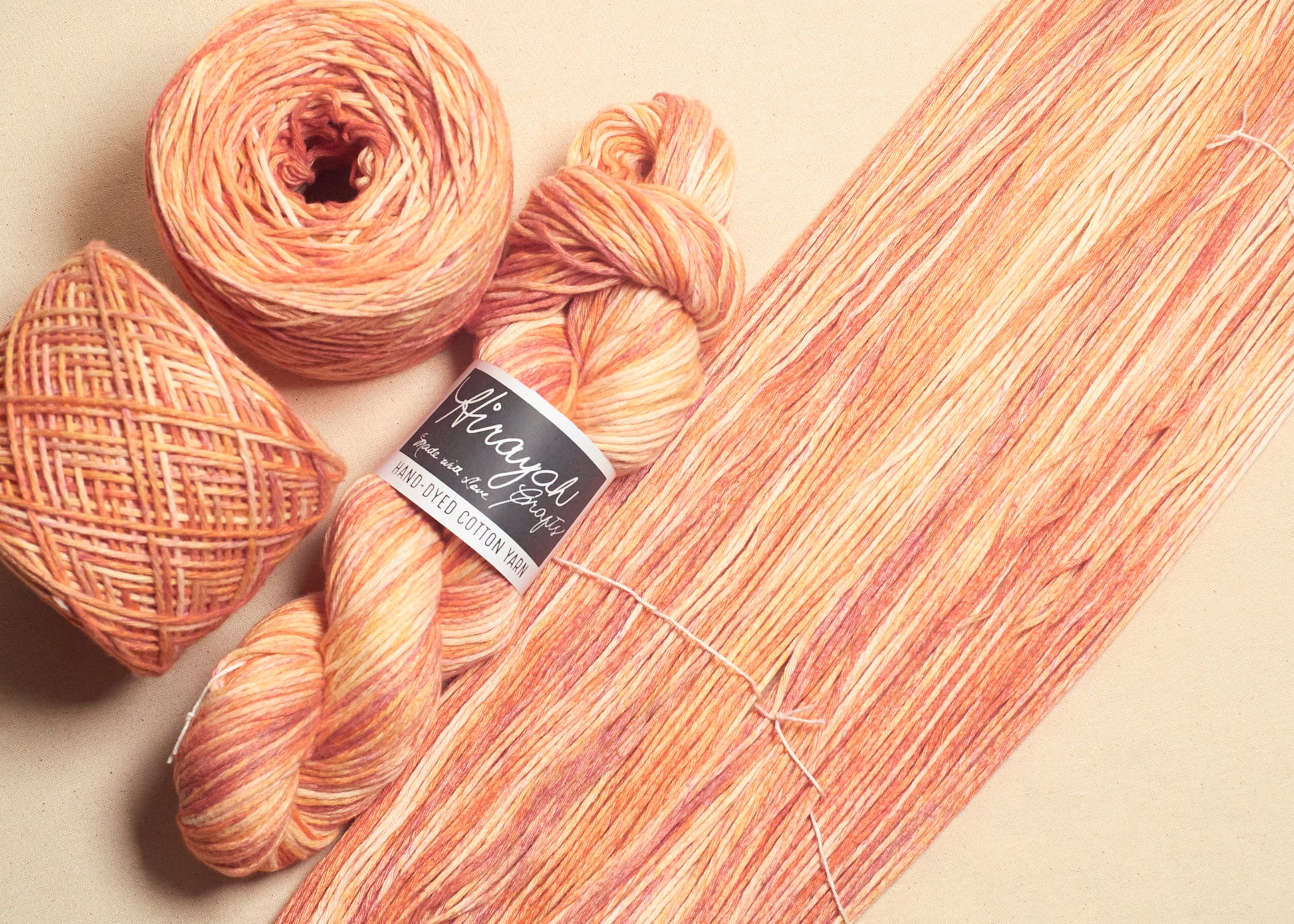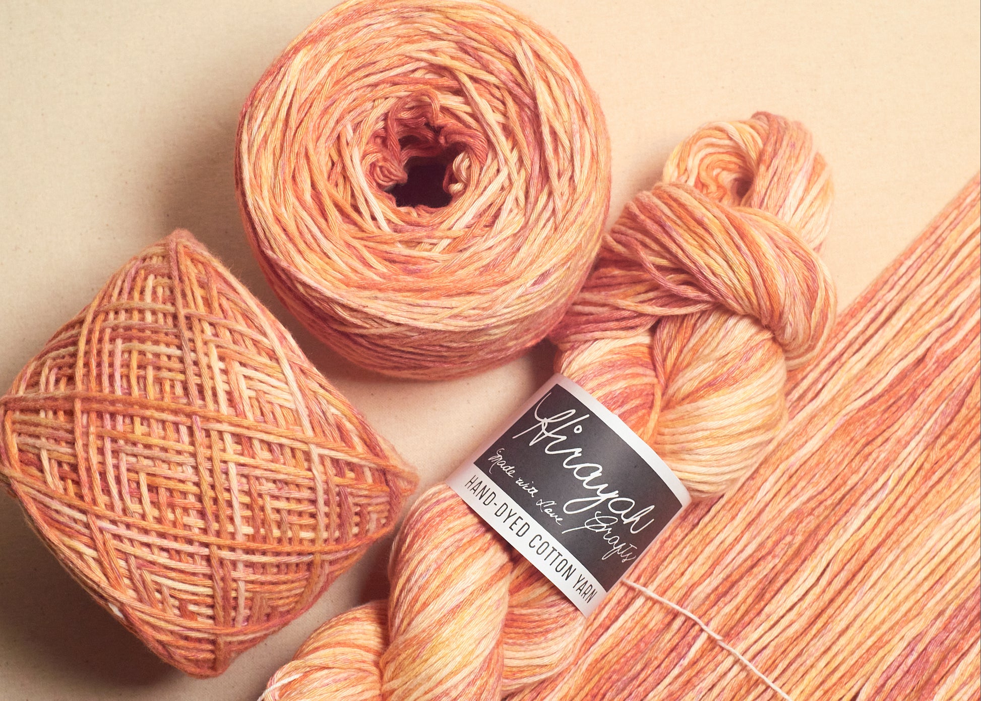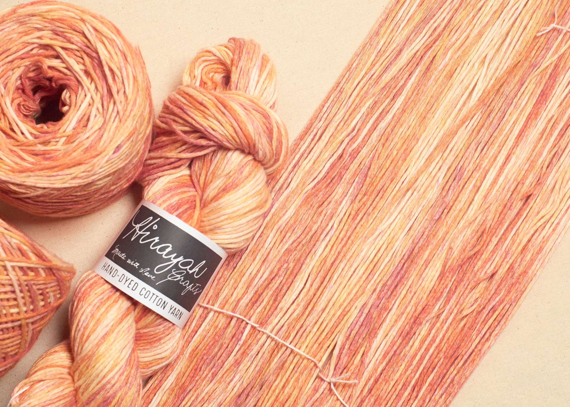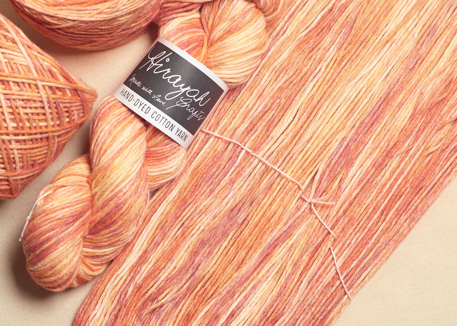 Light worsted weight/ 8ply hand-dyed cotton yarn.