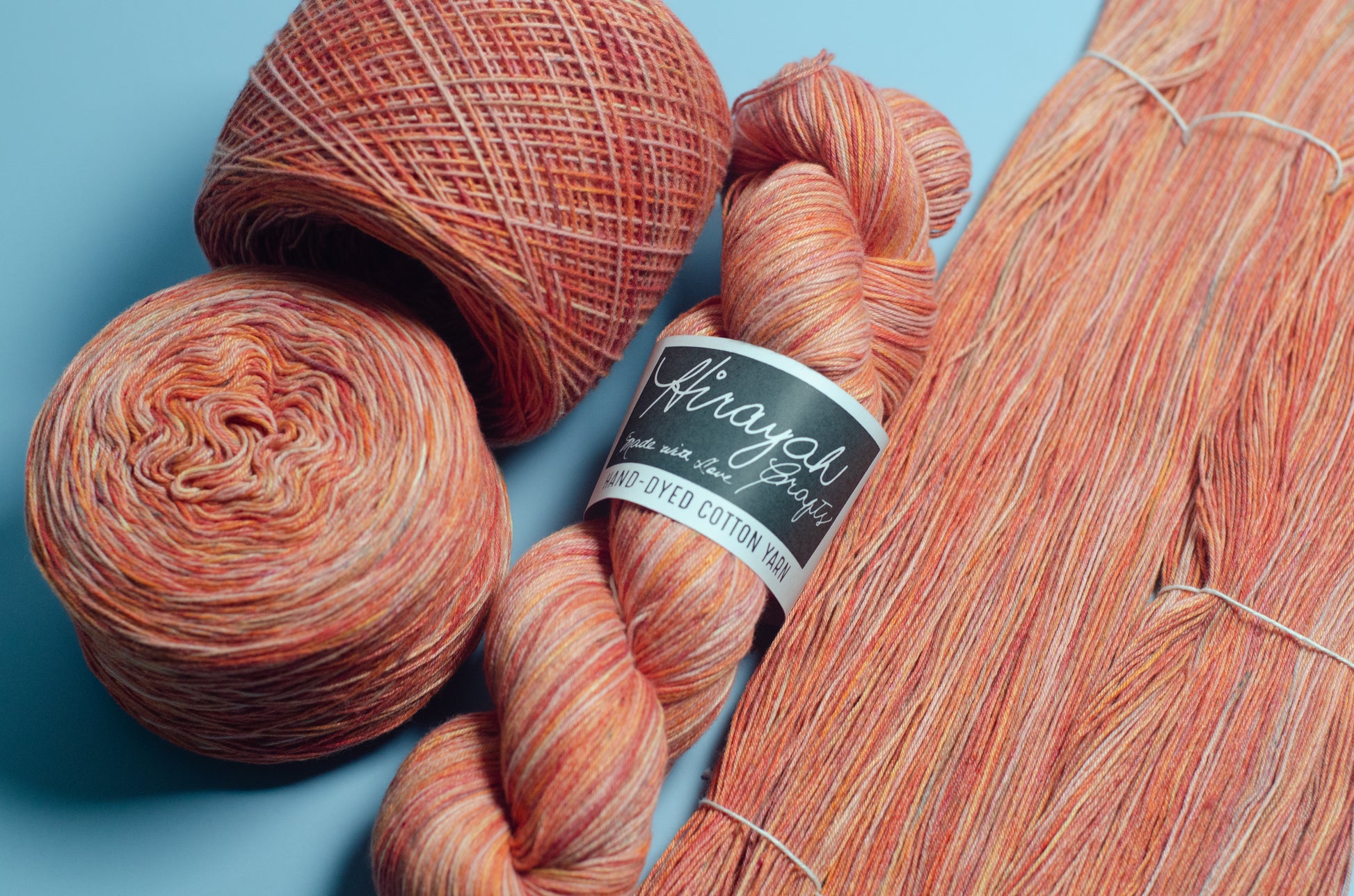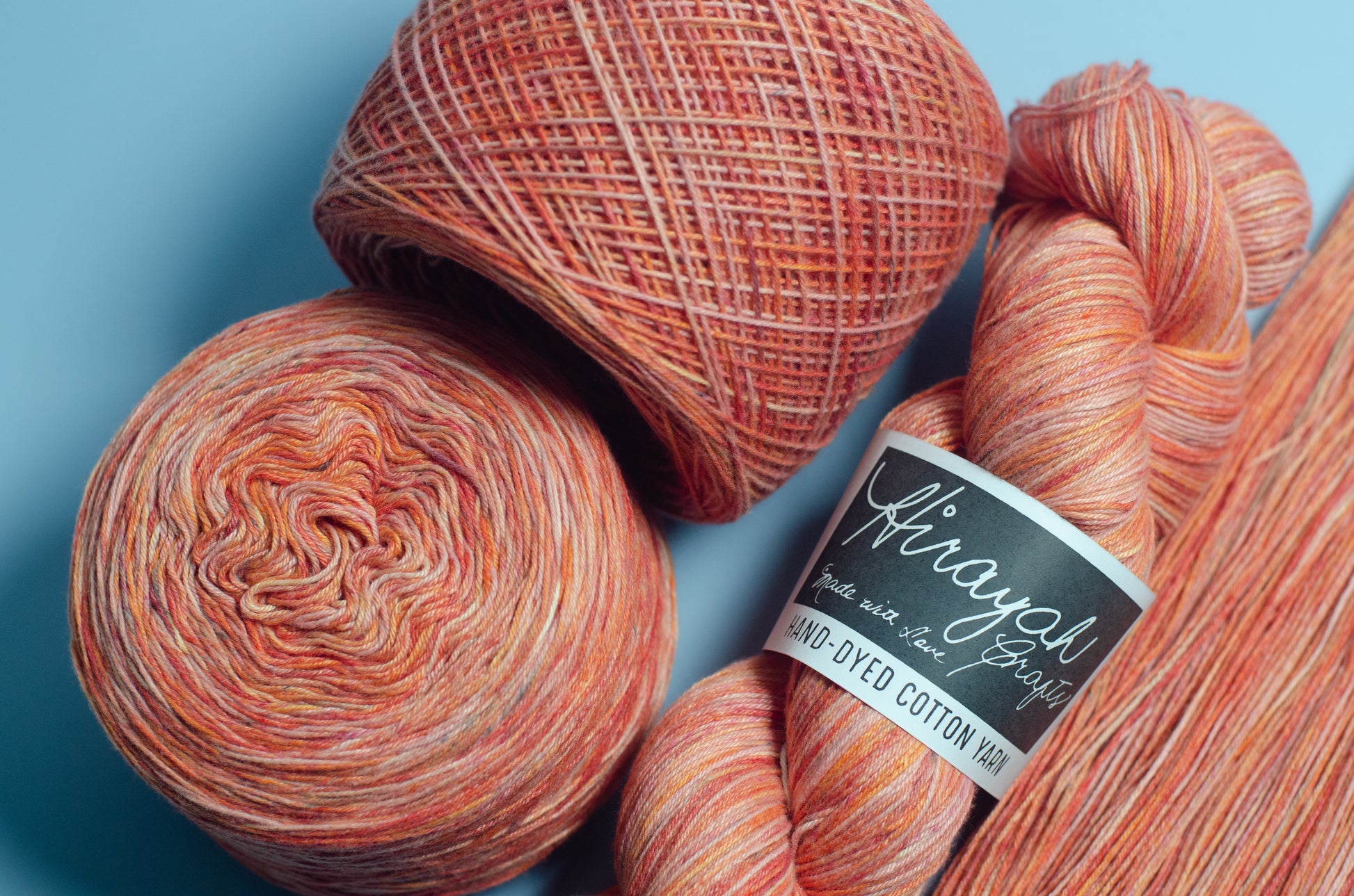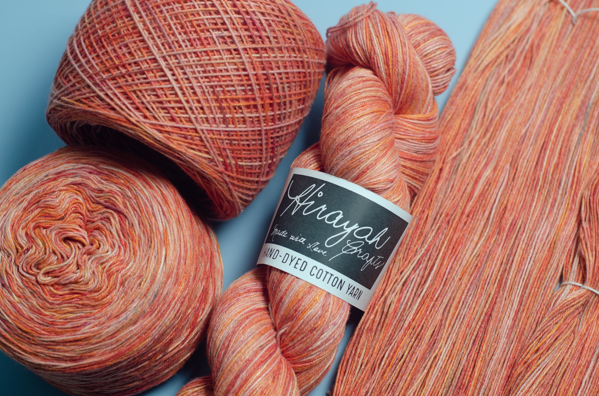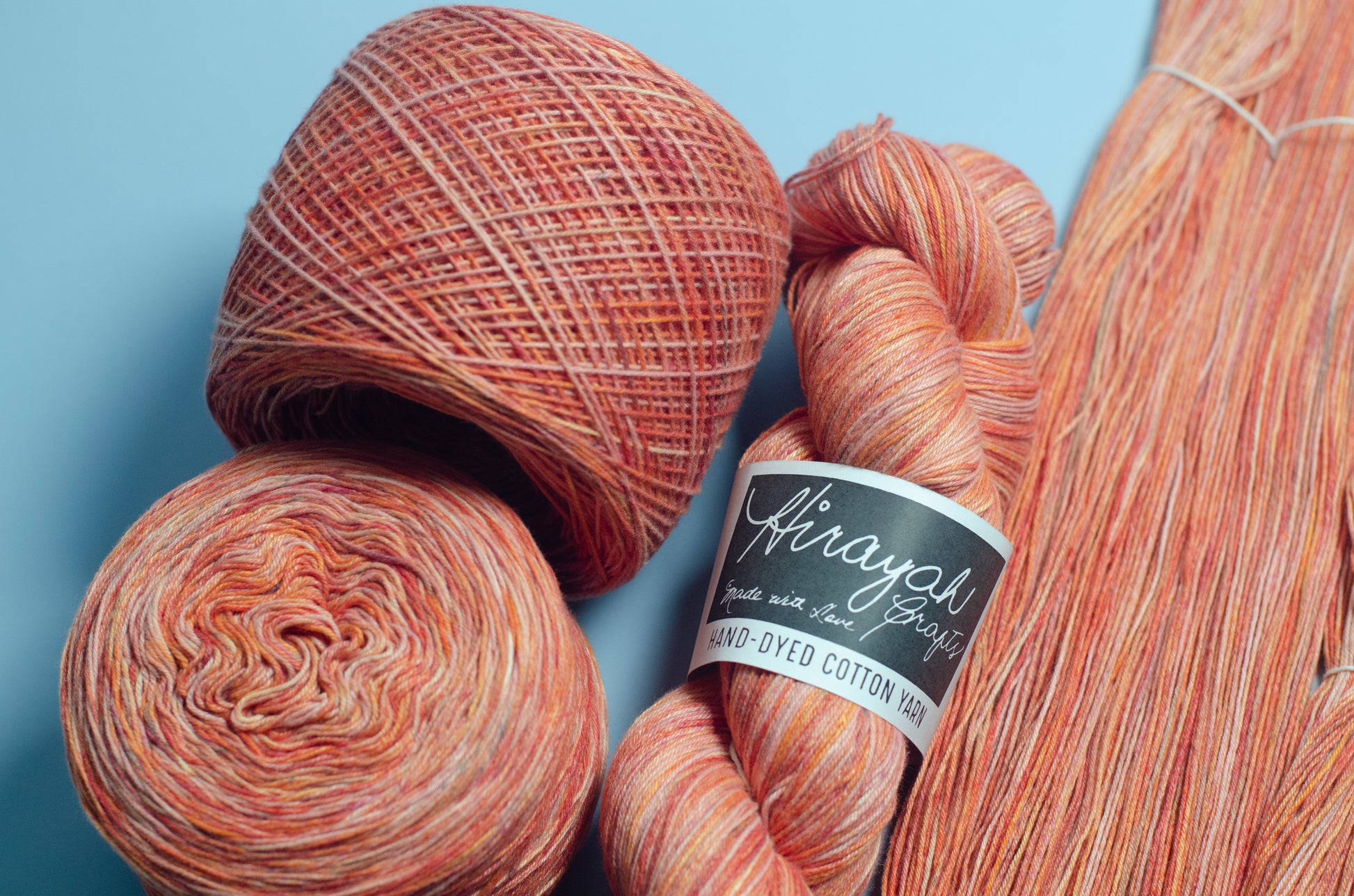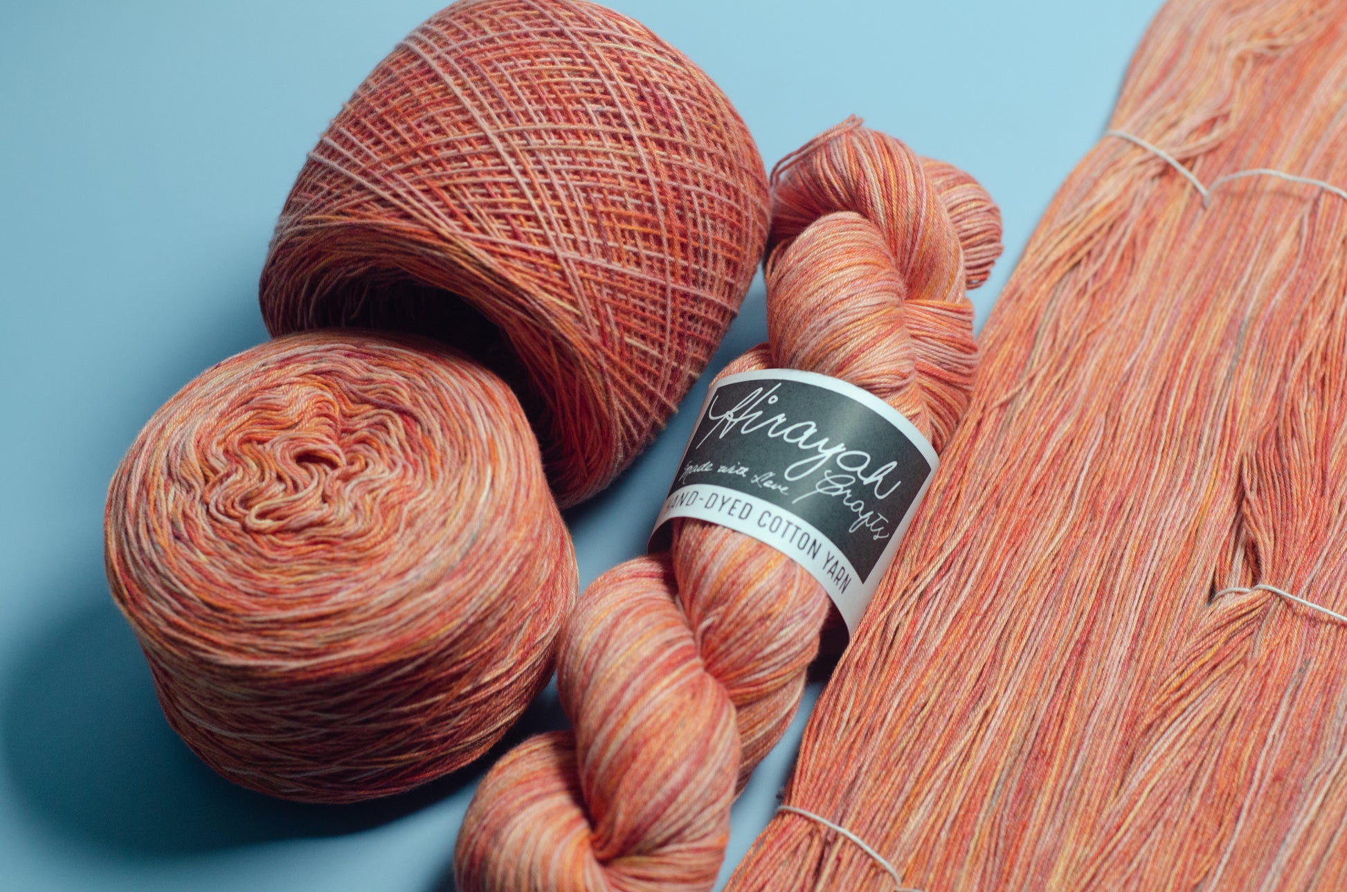Light worsted weight/ 8ply hand-dyed cotton yarn.